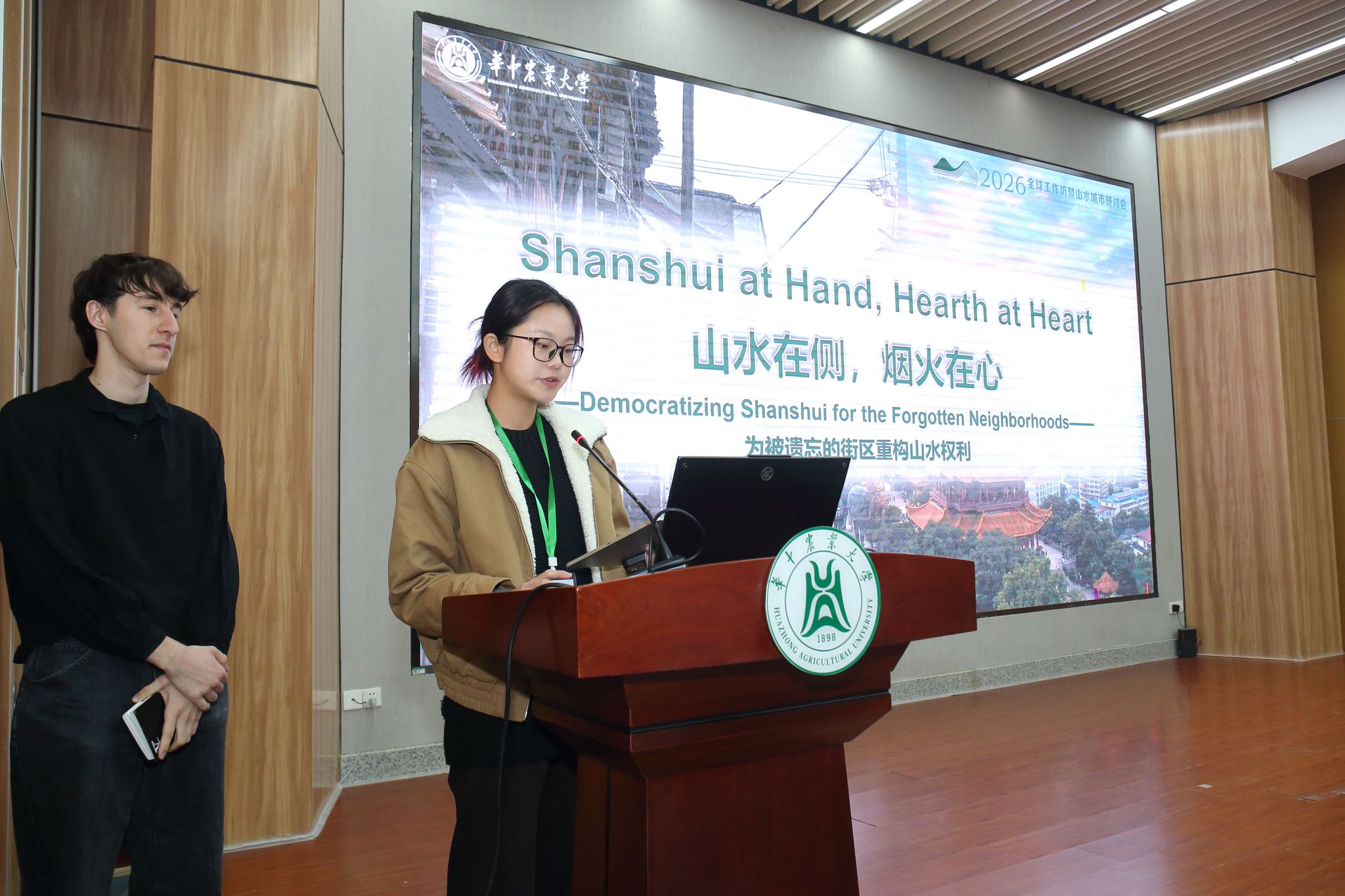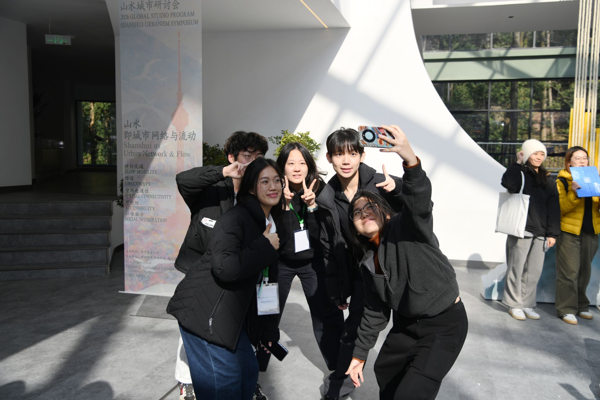 1月15日上午,华中农业大学景园楼报告厅内掌声雷动。当2026风景园林全球工作坊评委会宣布,由来自华中农业大学、北京林业大学、华南农业大学、中国香港高等教育科技学院和菲律宾迪利曼大学学生组成的“第六小组”,以其作品“Layering Traces:Restoring the Shanshui spirit into the Urban Fabric of Wuchang”(层迹山水:武昌山水精神的复归)获得2026风景园林全球工作坊最高奖“卓越奖”时,五位青年学子和小组指导老师陈彦霖激动地拥抱在一起。这个瞬间,不仅是对他们三天辛勤创作的最高认可,更是对这次风景园林全球工作坊主题“山水城市:建构未来人居环境”一次生动的注解。
