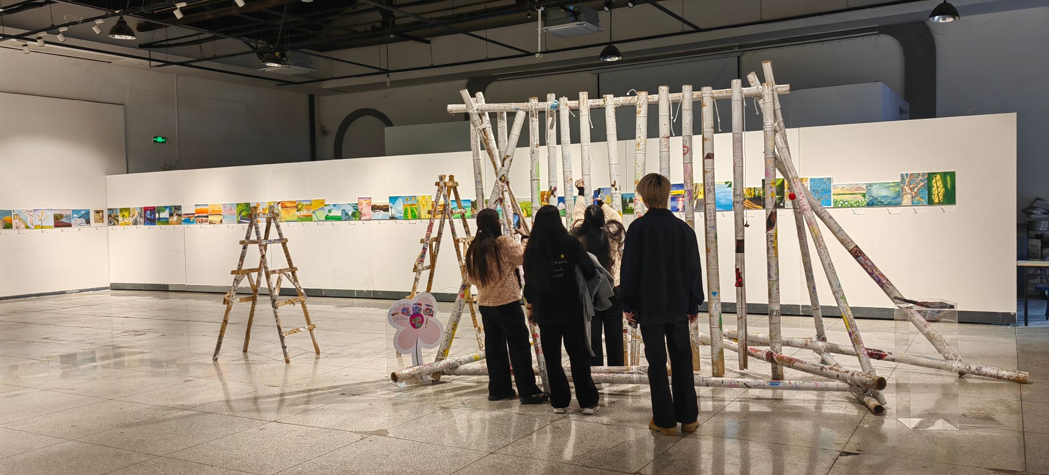 “《写写画画》综合美术画展,不仅展示了我们这些参与到课程中的同学与艺术的沟通,也能吸引到大家自发走近艺术。”让园艺林学学院2024级本科生何姚瑶特别感动的是,展出前进行最后一次创作时,一位来到艺术馆布展现场的小朋友看到大学生们聚在一起写写画画,她也拿起画布和画笔参与创作,她说:“我认为是画展举办最好的成果,就像人握住笔就会写画一样,人们看到这个展览也会想要自己来写写画画。”