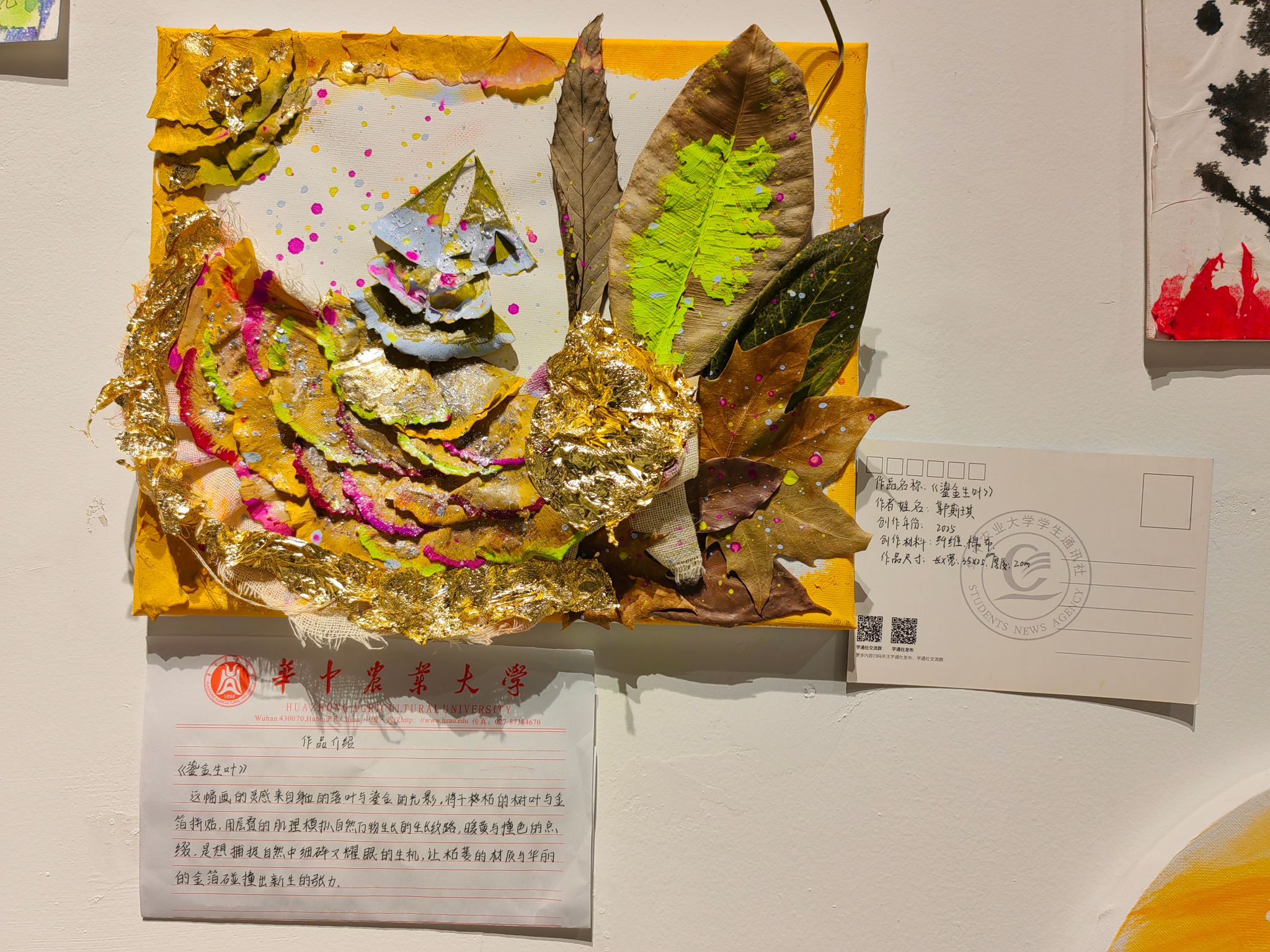 这个综合美术作品展以《艺术展览策划与美术馆》《美术中的多学科思维》两门写作与沟通课程以及《水性颜料风景绘画技法实训》《综合材料绘画创意实践》两门创新实践课程为平台,在园艺林学学院秦仁强和周欣两位老师的专业指导下,由来自各个专业各个年级的本科生主创,以关注自身、感受生活、感知自然、体验艺术为主线,展开对个体经验与自然关系的深层探讨,也是以艺术为媒介进行跨学科通识教育创新的一次生动实践。