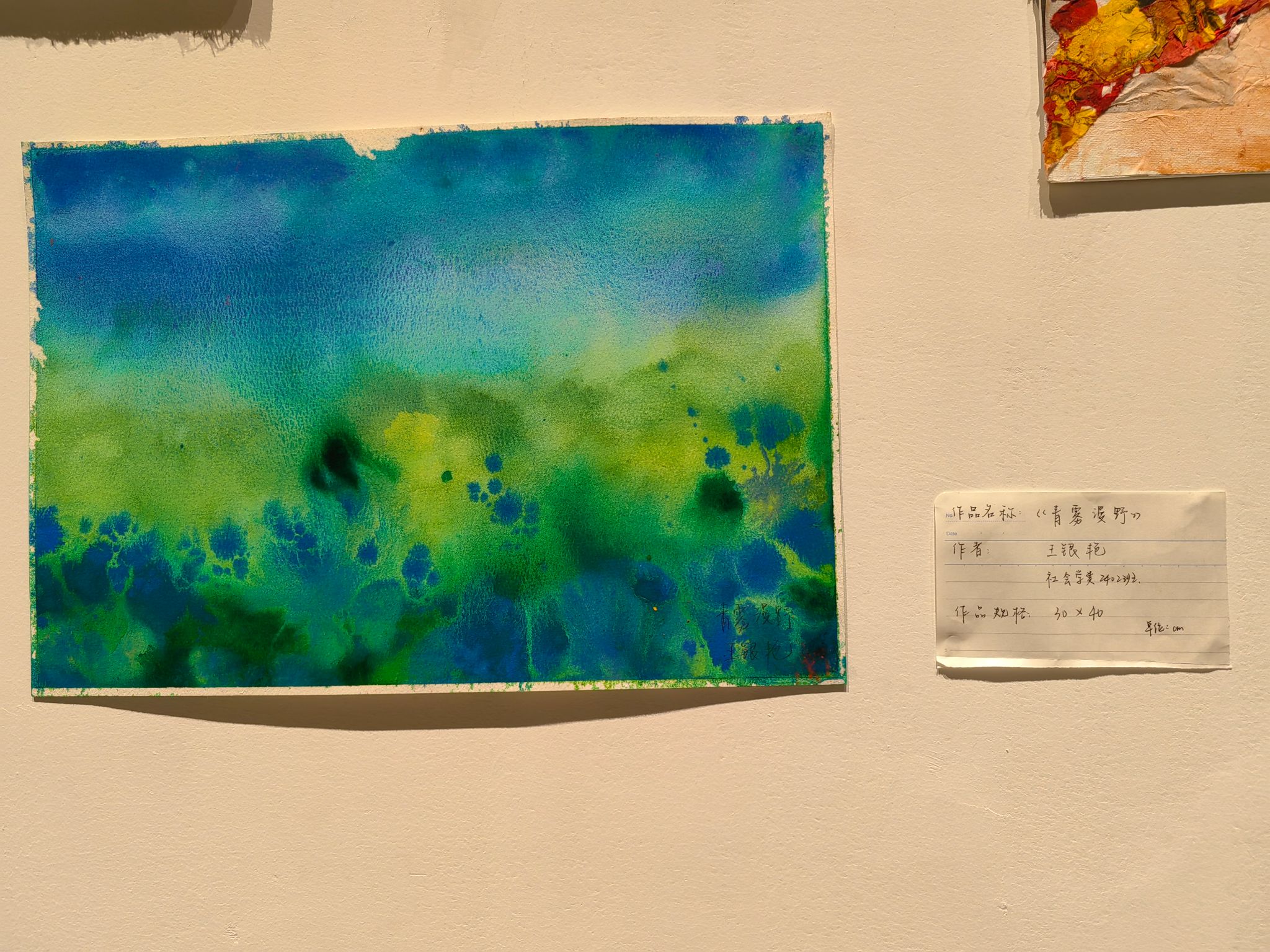 “水色在纸上的渗透与交融,本身就在模拟自然生长的过程。学生需要学会‘跟随’材料,而非完全‘控制’,这让他们对自然界的微妙变化有了更谦卑的认知。” 课程指导教师周欣认为,水性材料特有的流动性、通透性与偶然性,恰恰是“感知自然”的绝佳训练,这种创作使得每一幅风景画都成为一次独特的、不可复制的感知事件,这启发同学们珍视那些偶然的、湿润的、带有呼吸感的生命经验。