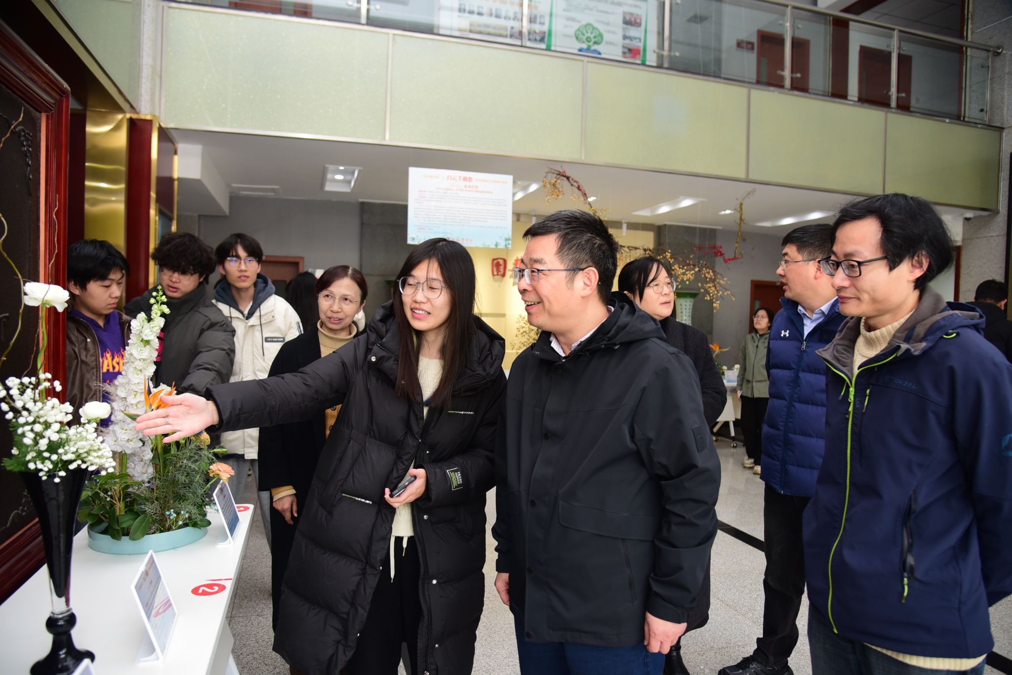南湖新闻网讯(通讯员 宋子豪 程玉华)枝蔓绕诗魂,花美藏画境。1月16日,园林北楼展厅内暗香浮动、诗意流转,由园艺林学学院、学院全国科普教育基地、园艺体验中心湖北省科普教育基地主办的第五届插花艺术课程作品展《花中露华浓》之“白云千载悠”正式开展。园艺林学学院党委书记龙健飞、副书记林辉、副院长傅小鹏,学院教学督导员蔡礼鸿老师到现场观展,与创作学生交流作品巧思,共同感受花艺与文化的碰撞。