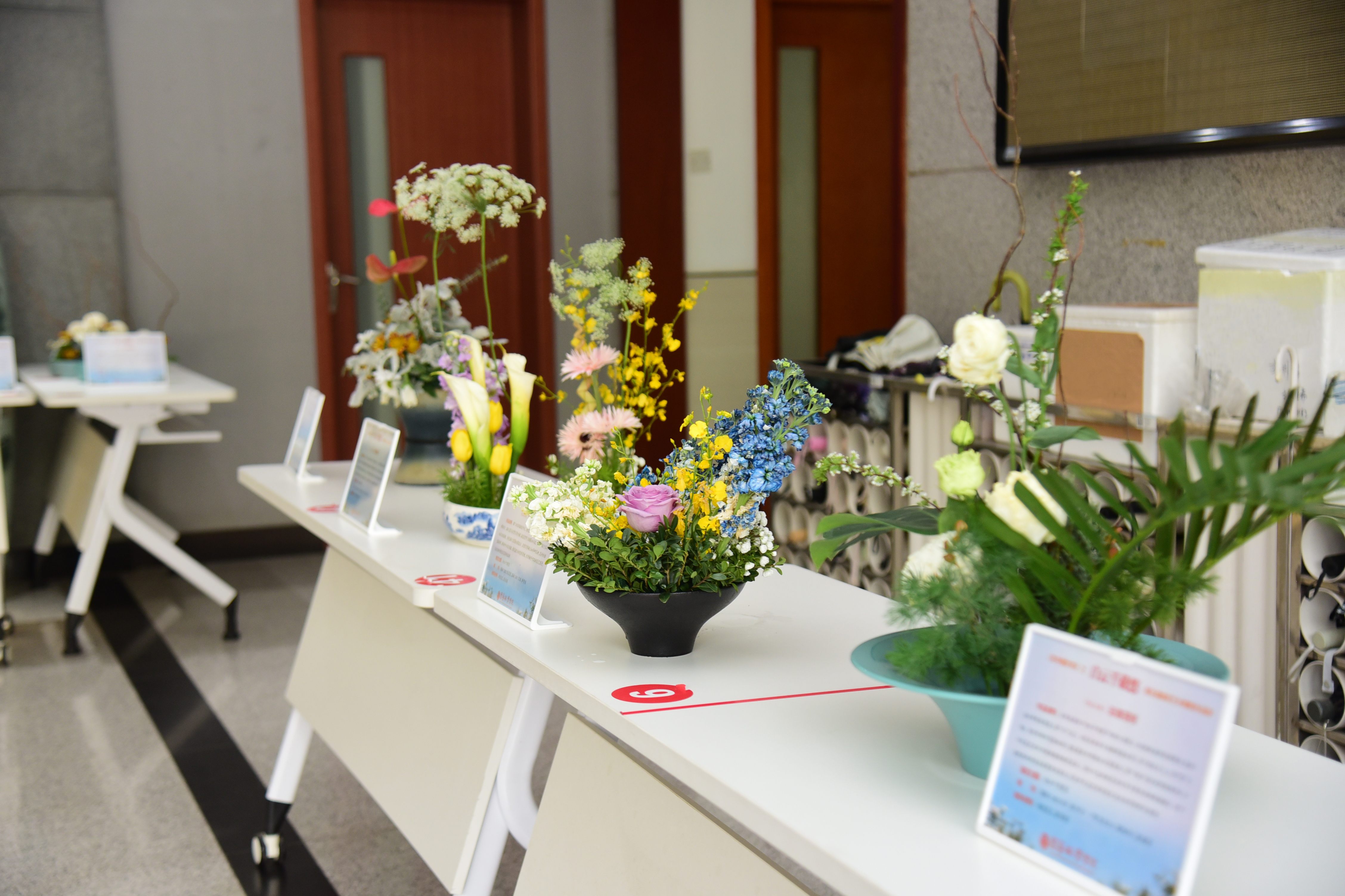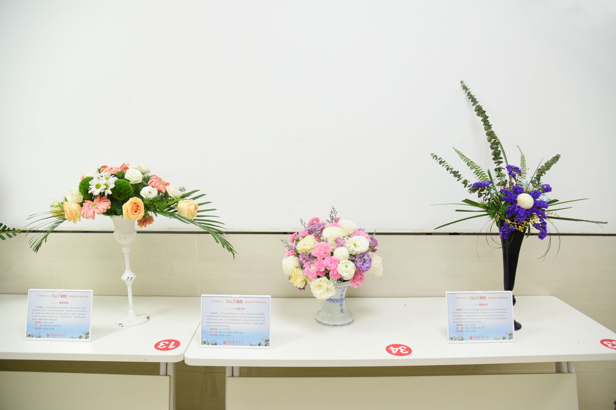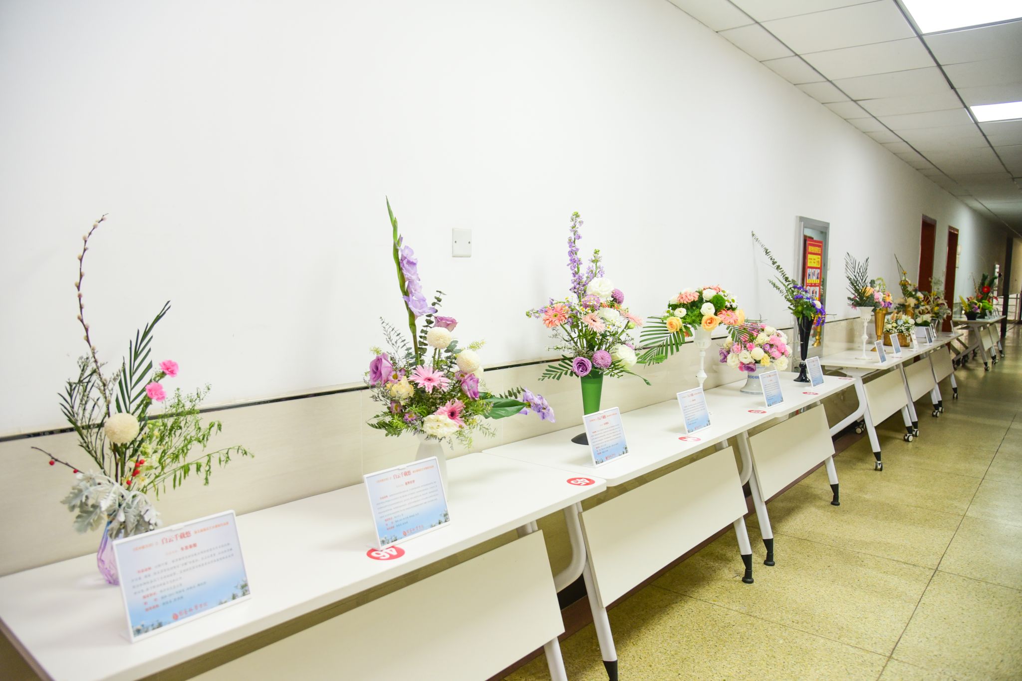 ▲插花艺术课程作品展开展(通讯员 程玉华 摄)