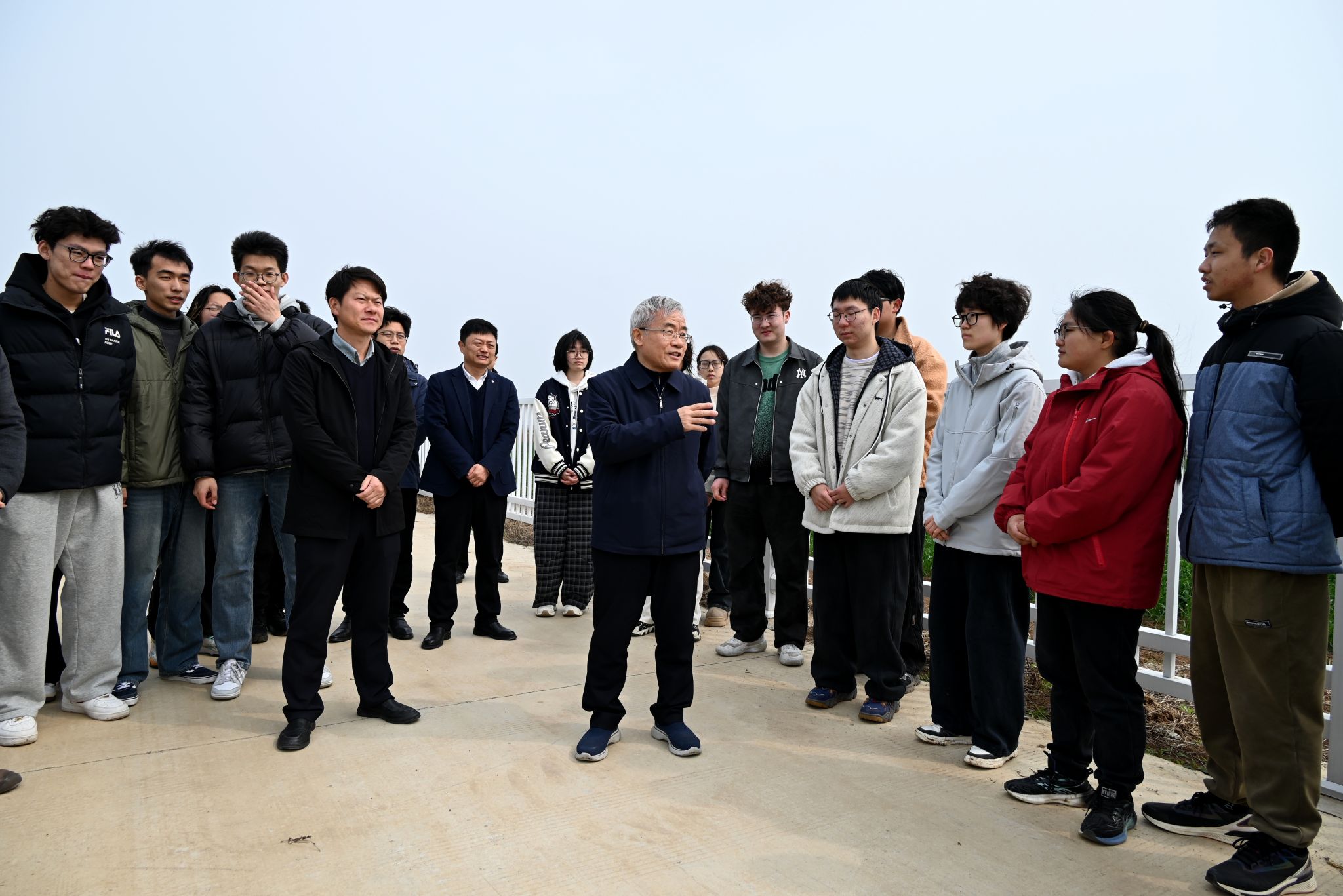 期间,他深入峪山科教基地、东津千亩试验示范基地、学科交叉中心及工程训练中心,以田间地头为课堂、以座谈交流为纽带,与师生们话学术之道、谈理想追求、悟人生真谛,为“两新”人才培养注入深厚底蕴与前行力量。