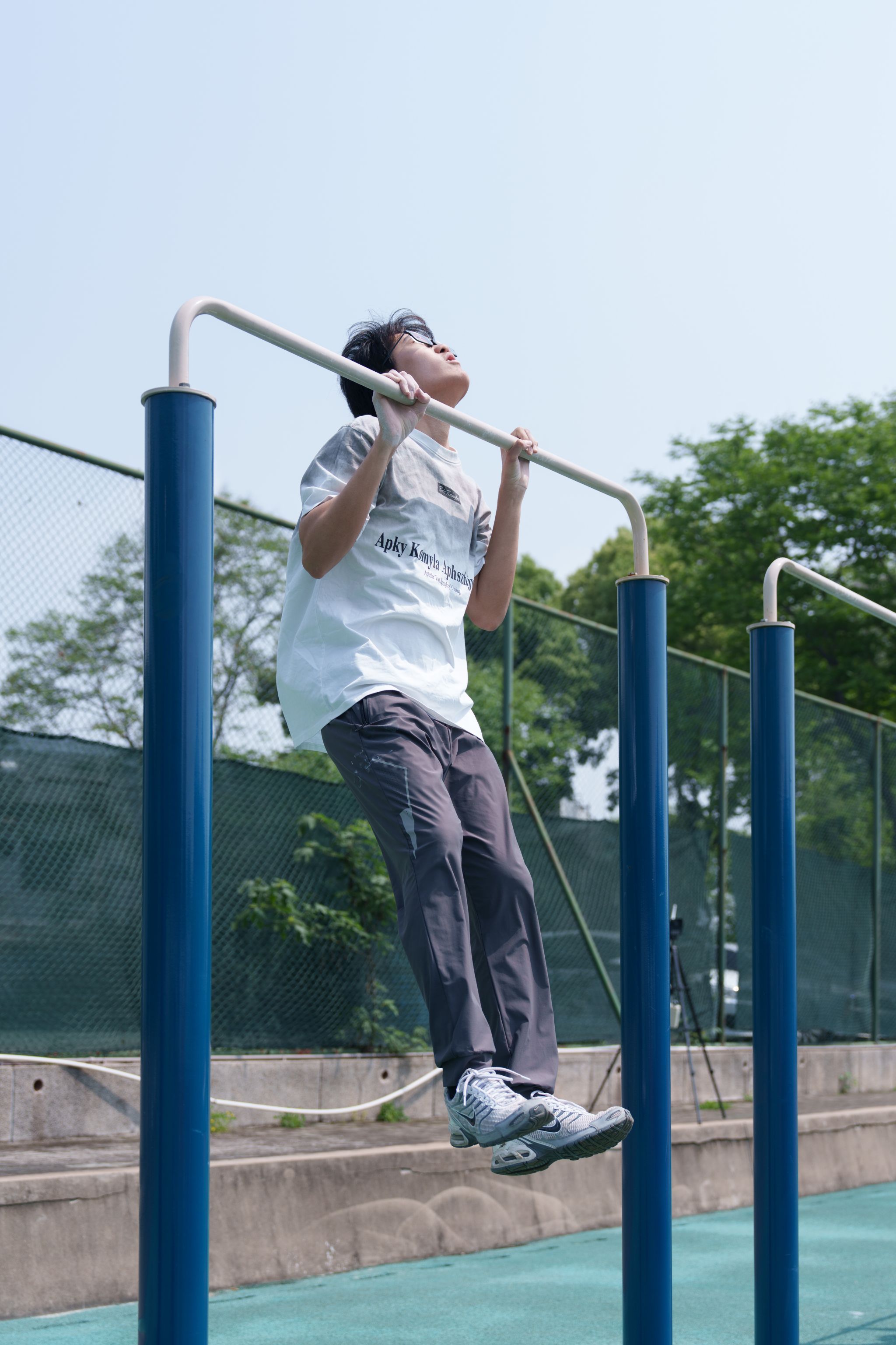 男子引体向上奋力向上(学通社记者 夏子豪 摄)