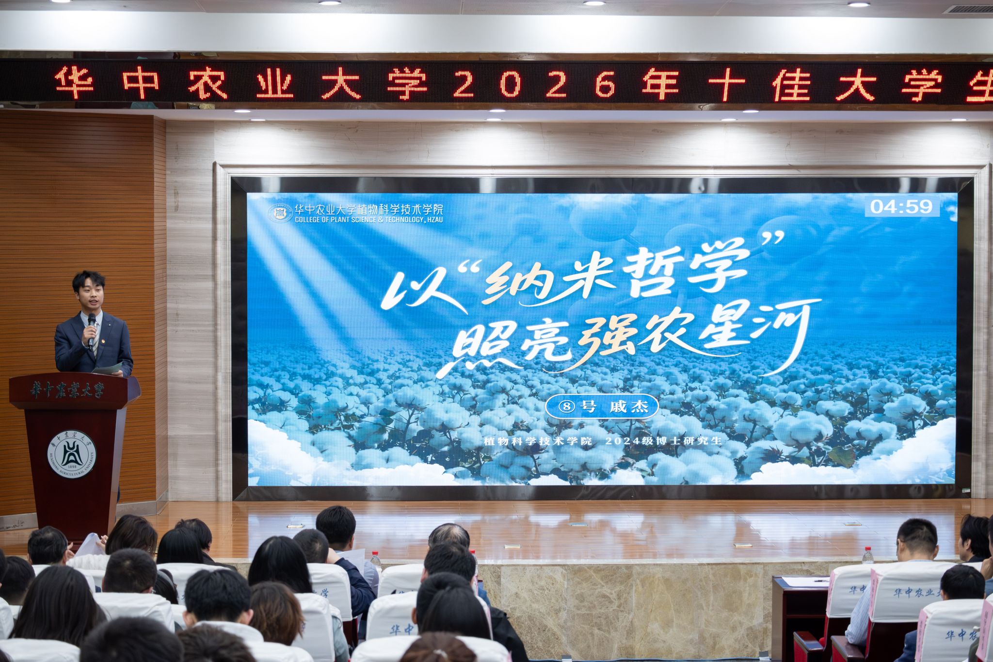 “以纳米哲学,照亮强农星河,做小颗粒里的大能量青年”,植物科学技术学院2024级作物栽培学与耕作学博士研究生戚杰向师生们诠释了他的“纳米哲学”。他入选中国科协青年人才计划,深耕农用纳米技术,助力盐碱地棉花增产,以“小而有为”的纳米哲学汇聚强农担当。