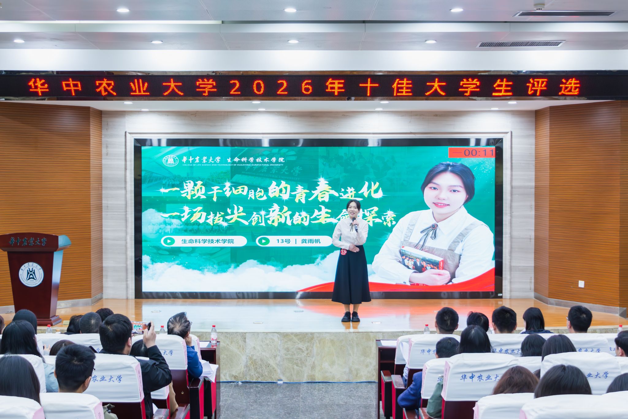 南湖新闻网讯(学通社记者 邓安琪 姜雨珊 通讯员 魏子淦)4月21日晚,我校第二十二届“十佳大学生”评选会在学生综合服务楼501报告厅举行。党委组织部、党委宣传部、本科生院、研究生院、团委等单位负责人,各学院领导班子成员代表、辅导员及学生代表参加评选会。来自13个学院的14名候选人依次登台,讲述青春奋斗故事。