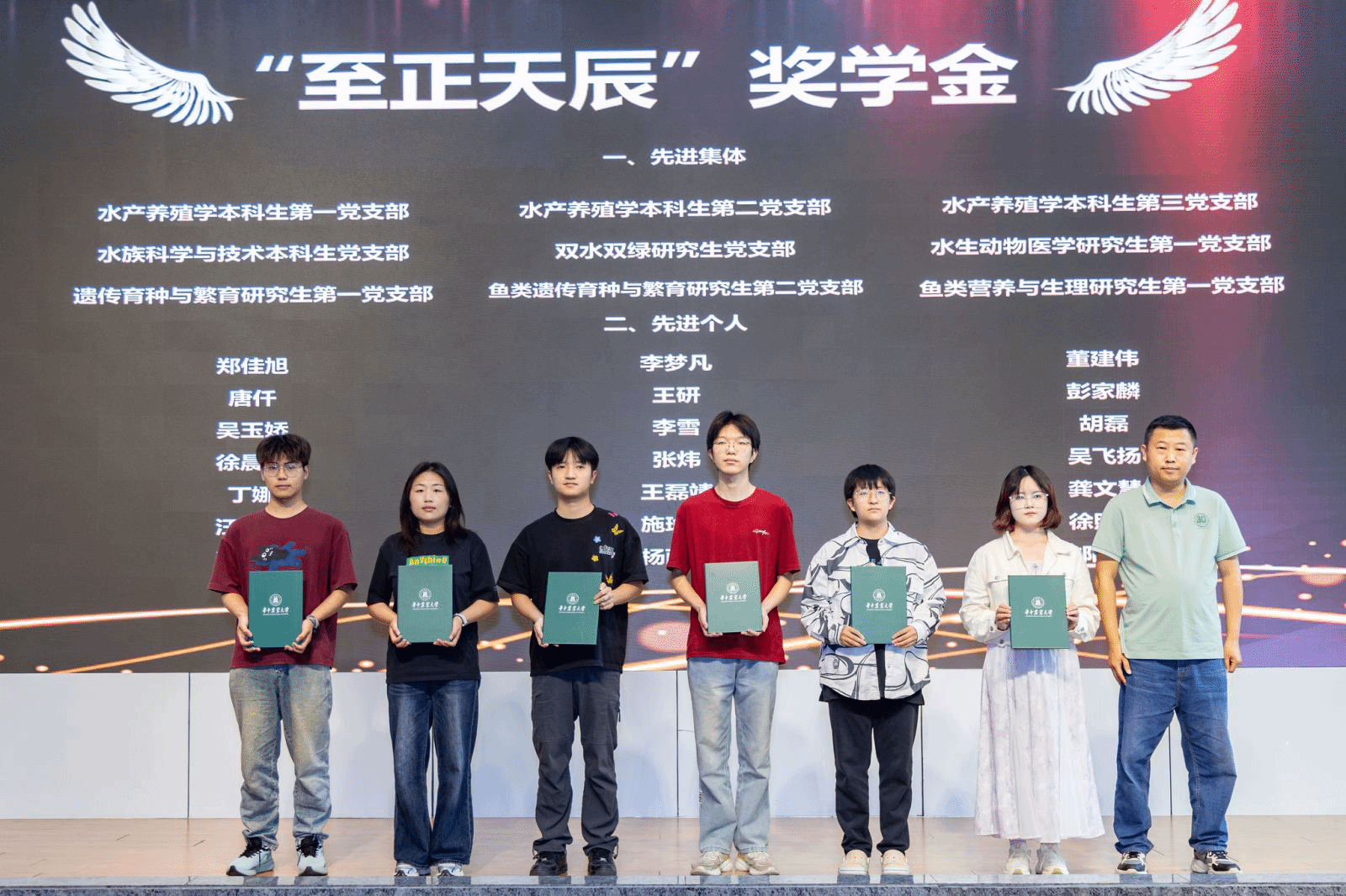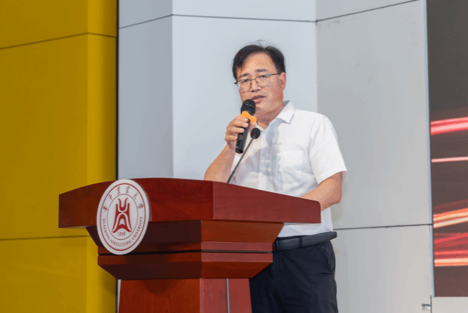 颁奖仪式伊始,郭刚奇代表学校向与会企业代表致以热烈欢迎,对长期以来支持学校教育事业发展、设立专项奖学金助力人才培养的行业同仁表达诚挚感谢,向获得企业奖学金的同学们表示衷心祝贺。他立足国家“大食物观”战略与农业卓越工程师培养布局,充分肯定了水产学院深耕校企协同育人二十八载的丰硕成果。他指出,水产学院依托行业企业资源,在无肌间刺鱼育种、生态渔业、智慧养殖等领域深耕突破,实现了人才培育与产业发展双向赋能。同时,他勉励全体水产学子厚植强农兴农情怀,深耕专业、知行合一,主动对接水产行业发展需求,练就过硬专业本领,立志投身“蓝色粮仓”建设,成长为助力水产产业高质量发展的新时代青年人才。