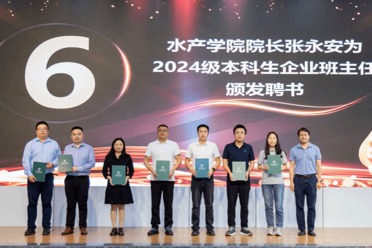 为进一步深化产教融合、夯实校企协同育人体系,落实农业卓越工程师培养战略,活动现场启动2024级本科生企业班主任聘任仪式。水产学院副院长沈继斌宣读了企业班主任聘任文件,院长张永安为受聘企业班主任代表逐一颁发聘书,一纸聘书承载着校企共育的责任与期许,标志着学院“校内导师+企业导师”双育人模式持续走深走实。
