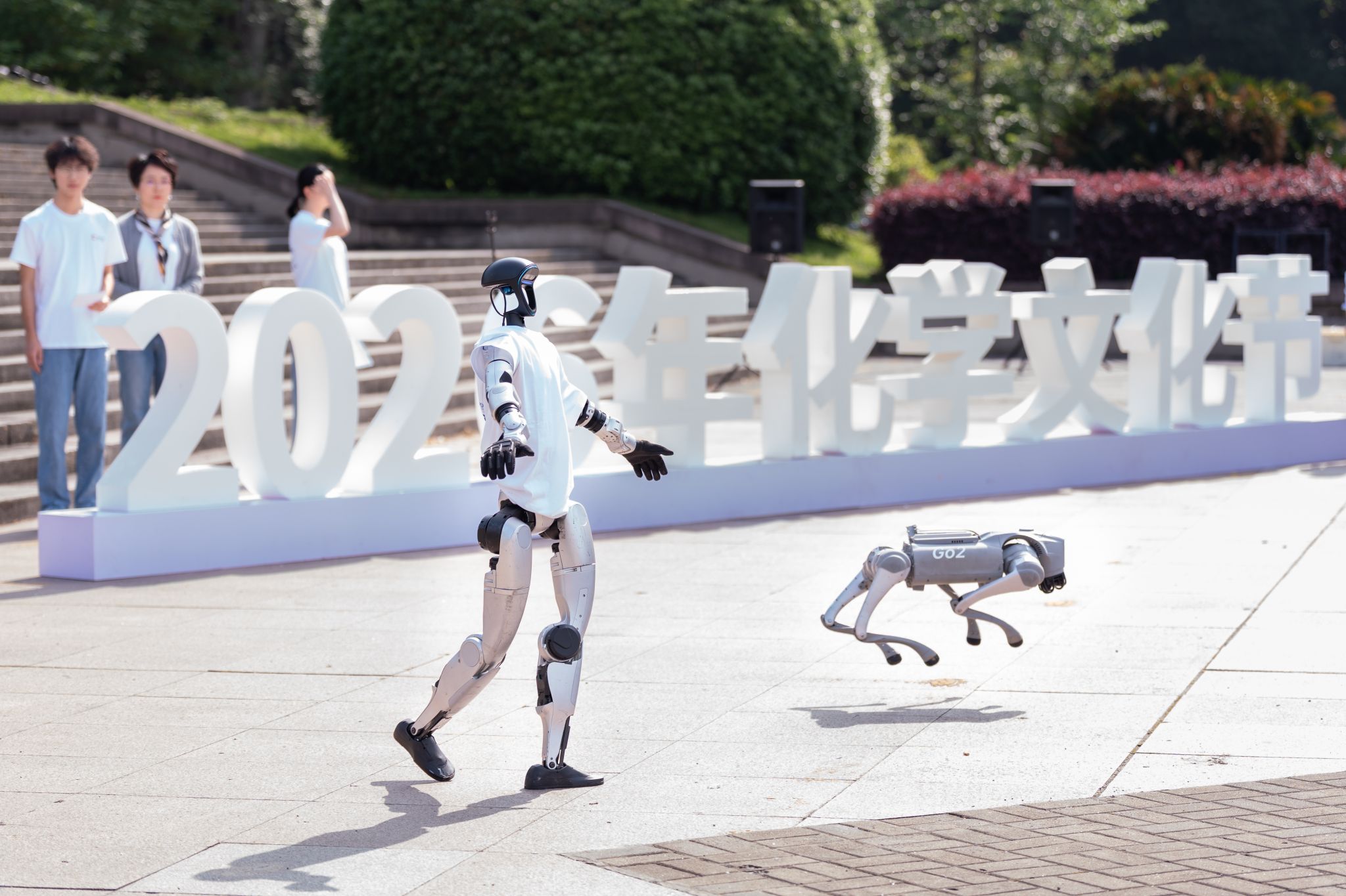 开幕式上,机器人随着同学们演唱《化学是你化学是我》起舞(李馨瑶 摄)