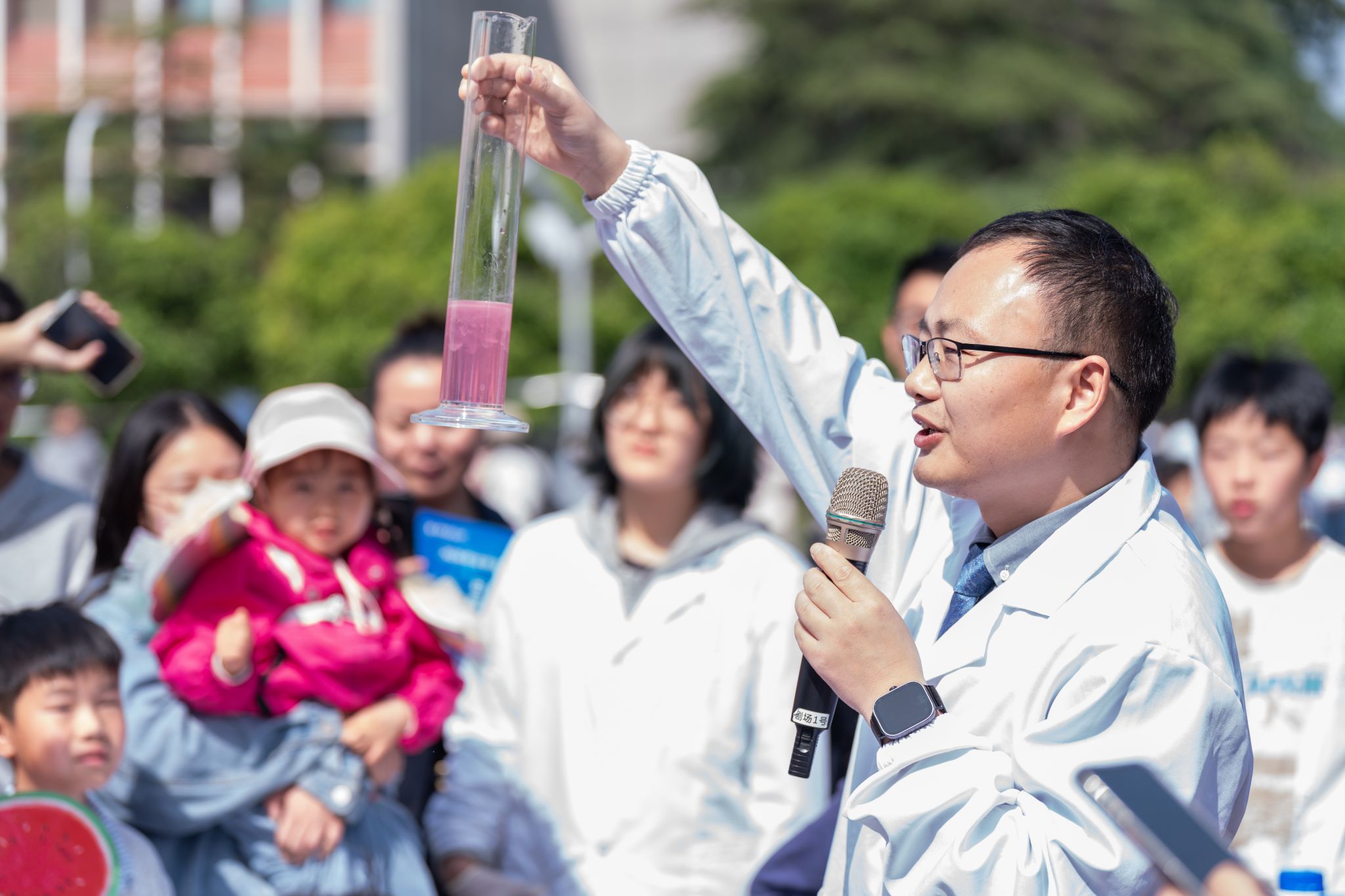 石炜讲解“瓶中万象”趣味化学实验(李馨瑶 摄)
