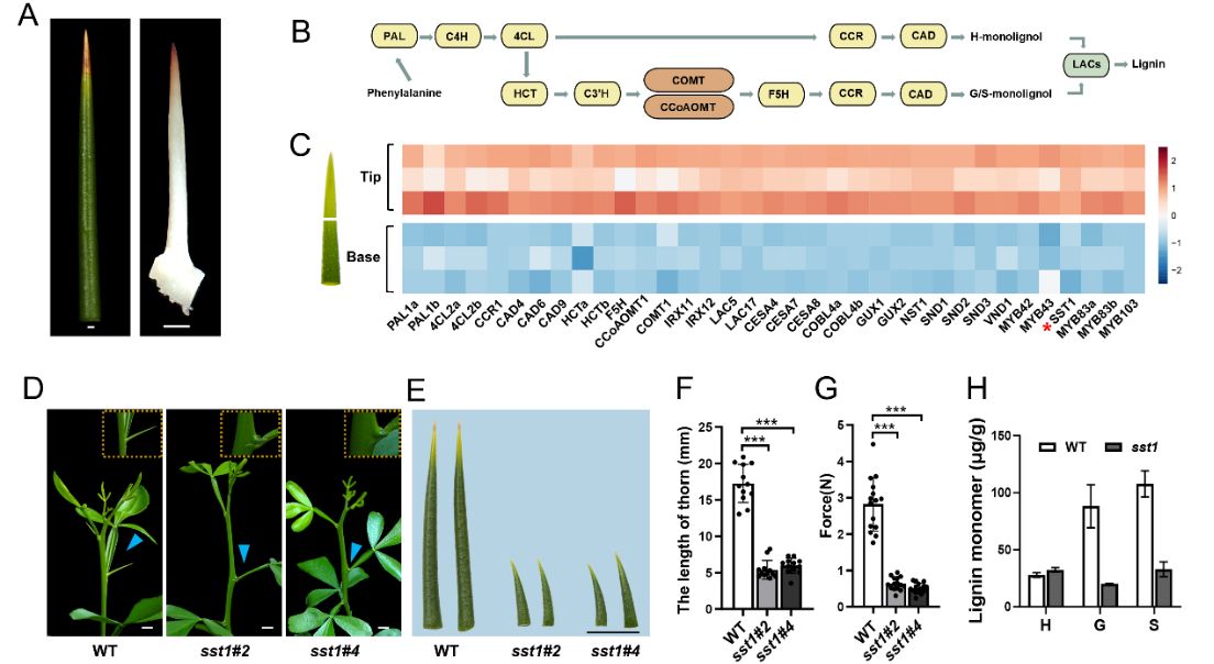 1. 鉴定到调控枝刺尖端硬化的关键基因SST1