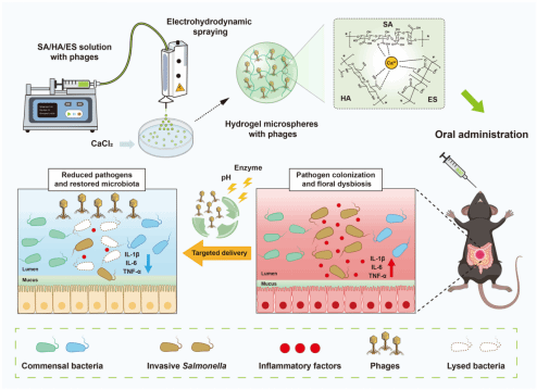 南湖新闻网讯(通讯员 生医)近日,生物医学与健康学院、食品科学技术学院李锦铨教授团队在Nature Communications期刊上发表题为“In situ gut microbiota editing: Enhancing therapeutic efficacy for bacterial colitis by compatible oral hydrogel microspheres with phages”的研究论文,提出了肠道菌群精准编辑维持肠道稳态新思路。