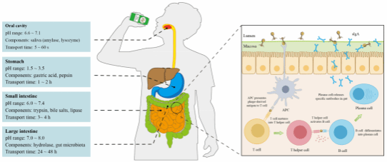 噬菌体是一类以细菌为宿主的病毒,具有严格的宿主特异性,仅能感染特定的细菌种类,而对人体细胞及其他非靶向微生物几乎不产生影响。基于这种高度特异性,噬菌体可在不破坏肠道整体微生态结构的前提下,实现对病原菌的精准清除,从而达到真正意义上的定向治疗(图2)。然而,噬菌体的口服给药在应用中仍面临诸多挑战。例如,进入胃肠道后,噬菌体需经受胃酸、胆盐及消化酶等多重不利因素的作用,导致其生物利用度显著降低、体内存活率下降,同时在肠道内滞留时间较短,严重制约了其抗菌活性和治疗效果(图3)。