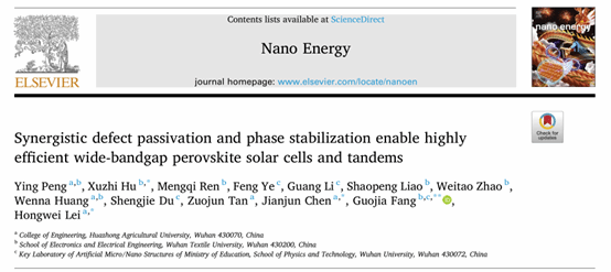 南湖新闻网讯(通讯员 彭英)近日,我校工学院光机电共性技术与装备团队在宽带隙单结及叠层光伏领域取得新进展,相关研究成果以“Synergistic Defect Passivation and Phase Stabilization Enable Highly Efficient Wide-Bandgap Perovskite Solar Cells and Tandems”为题在Nano Energy在线发表。