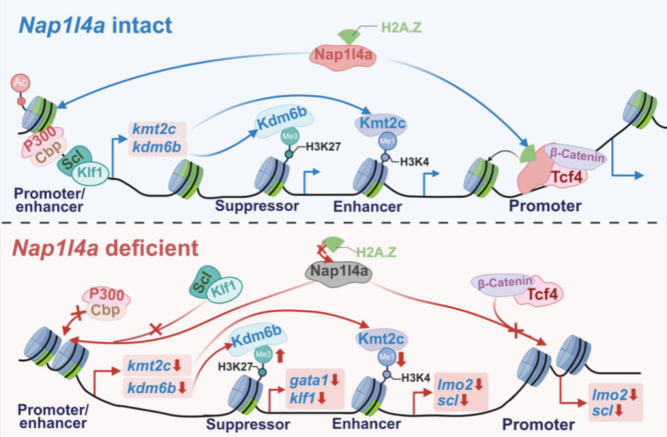 图2 Nap1l4a调控斑马鱼红细胞生成的作用机制