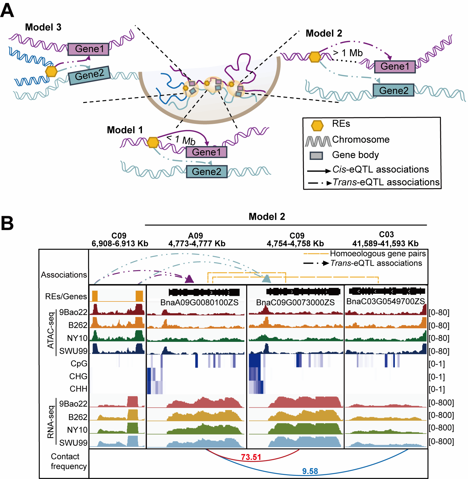 This study provides valuable resources for studying the intricate regulatory network governed by regulatory elements and sheds new light on exploring the cross-chromosomal regulation in polyploid plants.
