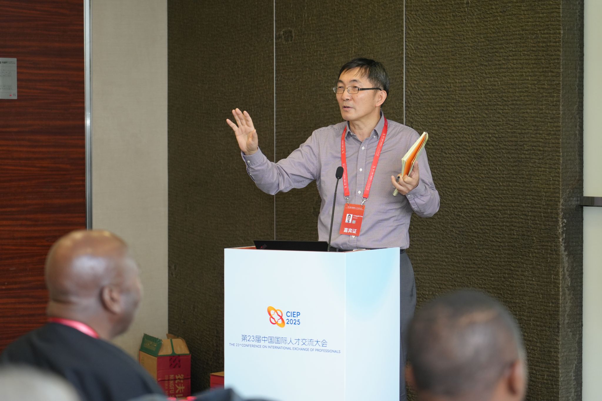 在闪电演讲中,7名学者从跨学科视角共同探讨全球粮食安全的威胁、挑战、机遇和解决方案,展示最新研究成果,涵盖小麦育种技术、地缘冲突威胁、中巴经济走廊框架机遇、全球病虫害综合治理项目、生态治理与粮食安全、以及教育培训和青年科学家支持赋能等议题。