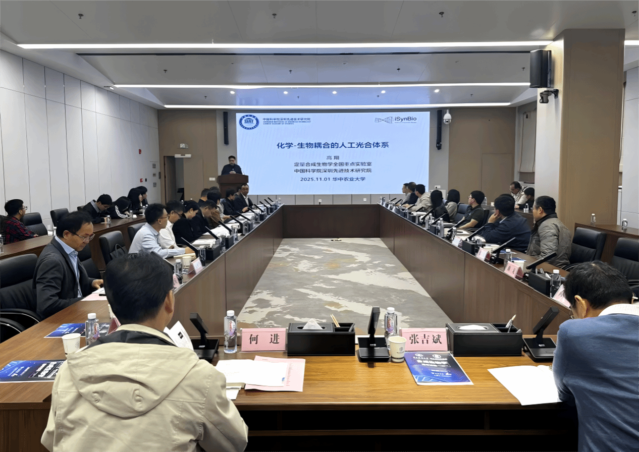 学术报告环节,首先由信息学院黄小罗教授主持。他重点介绍了与会专家在合成生物学基础科学理论以及产业应用方面的创新突破与成就。中国科学院深圳先进技术研究院高翔副研究员带来题为《化学-生物耦合的人工光合系统》的精彩报告。该团队采用合成生物学与电化学相结合的技术策略,构建人工光合系统以模拟自然光合作用,探索将二氧化碳高效转化为有机物的规模化路径,该技术有望为海洋碳移除提供新方案,助力全球碳中和目标实现。华南理工大学叶健文教授分享了其在生物制造领域的系统性创新成果。其团队聚焦于生物可降解材料PHA的绿色生产,通过对生产菌株的代谢网络进行精细化、模块化重构,成功解除了菌株自身的代谢抑制,并引入了高效的合成通路,将其打造成为一个产能卓越、成本可控的理想“细胞工厂”。他同时详细介绍了团队在技术孵化、中试放大以及工业生产等下游应用领域取得的突出成绩,充分展现了合成生物学在推动绿色工业和可持续发展中的巨大潜力,赢得与会专家好评。