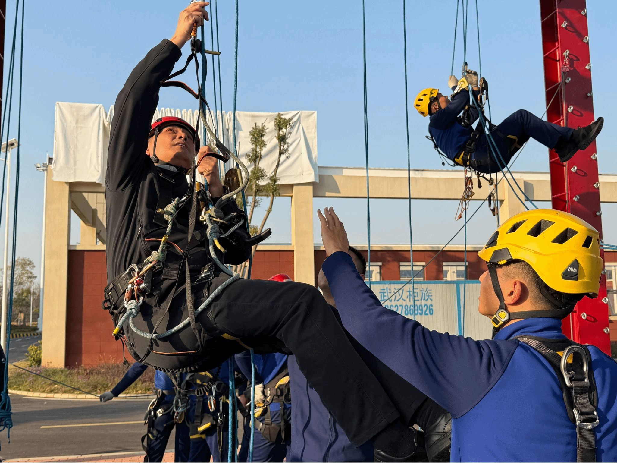 绳索救援实操是此次活动的重点环节。在专业教官指导下,师生们系统学习个人防护装备穿戴、锚点制作及倍力系统搭建等技能。在“沉浸式”体验后,食品科学技术学院研究生第七党支部党员王佳文同志深有感触:“在救援人员的专业指导下,我们完整体验了从装备检查、风险评估到团队协作转移伤员的全流程。每一个步骤的严谨规范、每一次精准的配合,都让我深刻体会到‘时间就是生命’的含义。”她表示,未来将把救援人员精益求精、刻苦训练的精神融入科研工作中,以严谨的态度攻克学术难题。