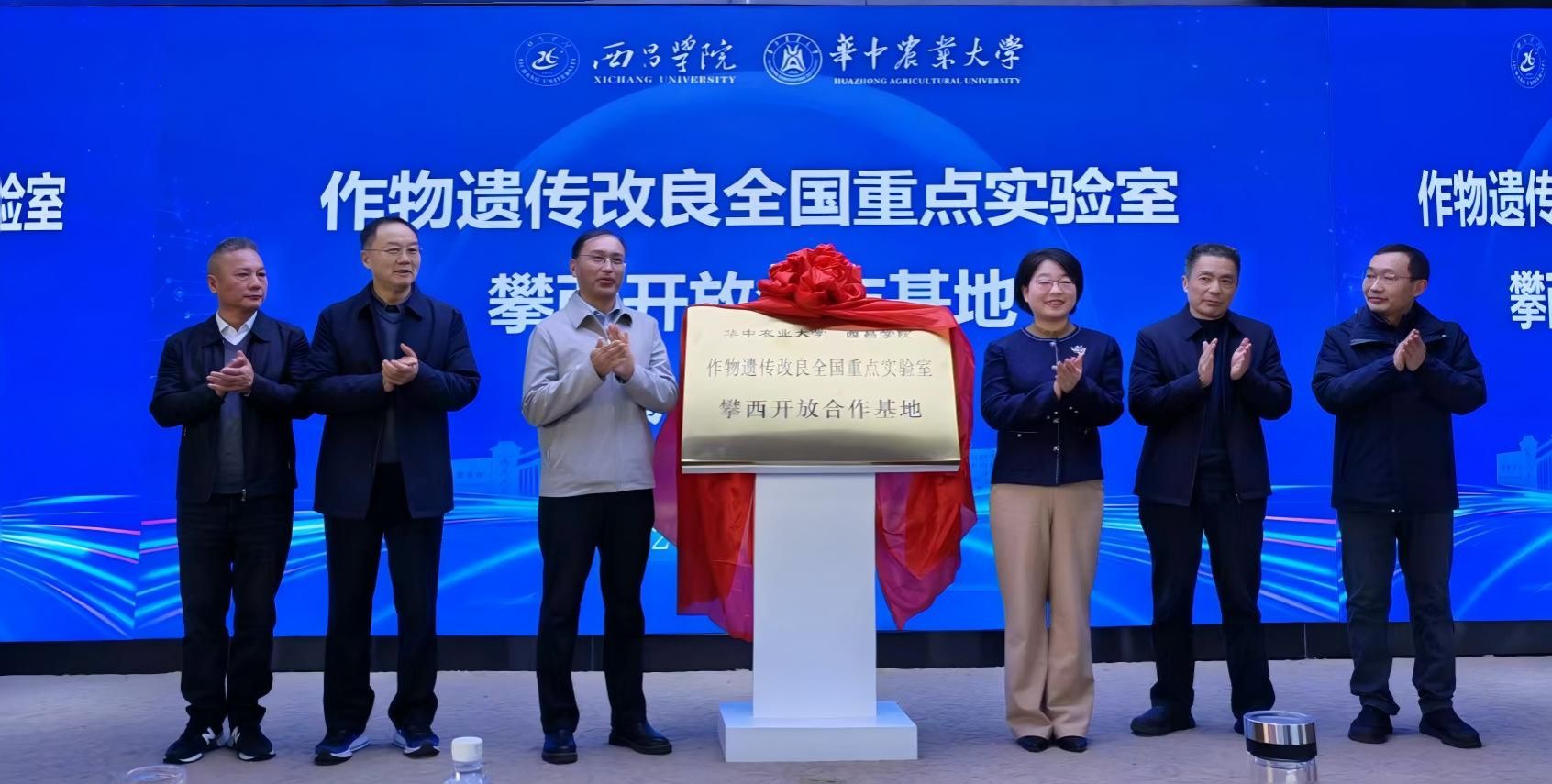 会前举行了作物遗传改良全国重点实验室攀西开放合作基地揭牌仪式,西昌学院校长白洁和华中农业大学作物遗传改良全国重点实验室主任熊立仲共同为开放合作基地揭牌。凉山州副州长周仕伦、西昌学院校长白洁、凉山州科技局副局长袁恩远致辞,介绍合作开放基地成立背景和意义,国家全谷物行动计划攀西实践,以及未来发展规划与期望。熊立仲教授表示,华中农业大学作物遗传改良全国重点实验室将从种质资源、科学问题、人才培养三方面与攀西实验室开展深入合作,助力攀西特色作物发展。