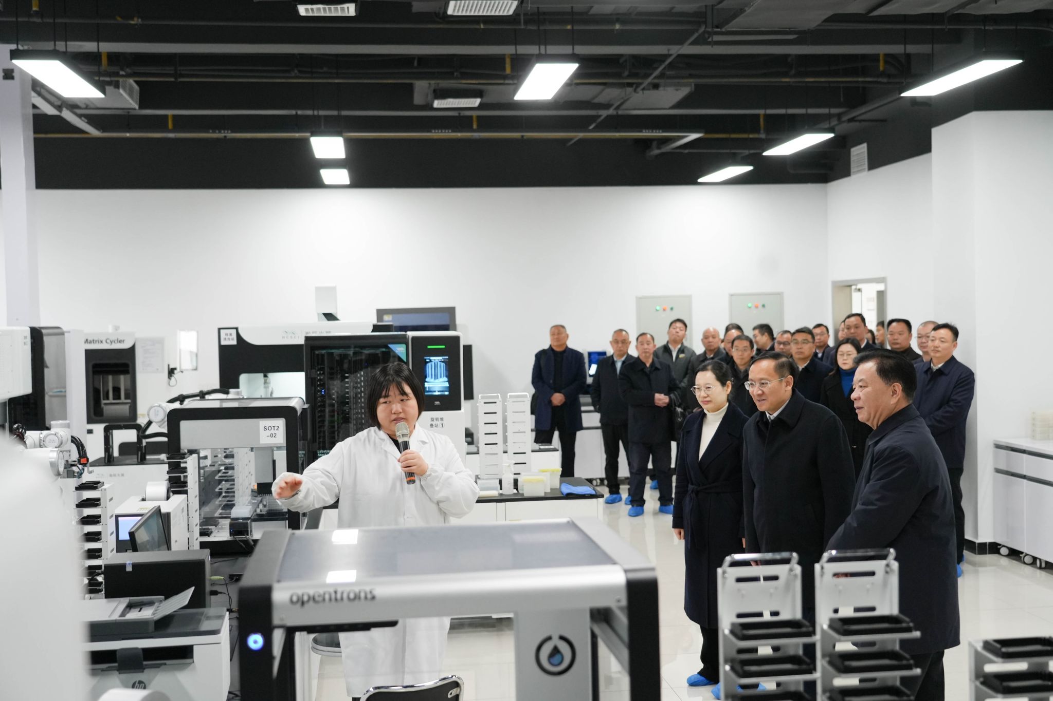 座谈会开始前,崔传金一行参观了湖北洪山实验室,了解学校科技创新、成果转化等方面情况。