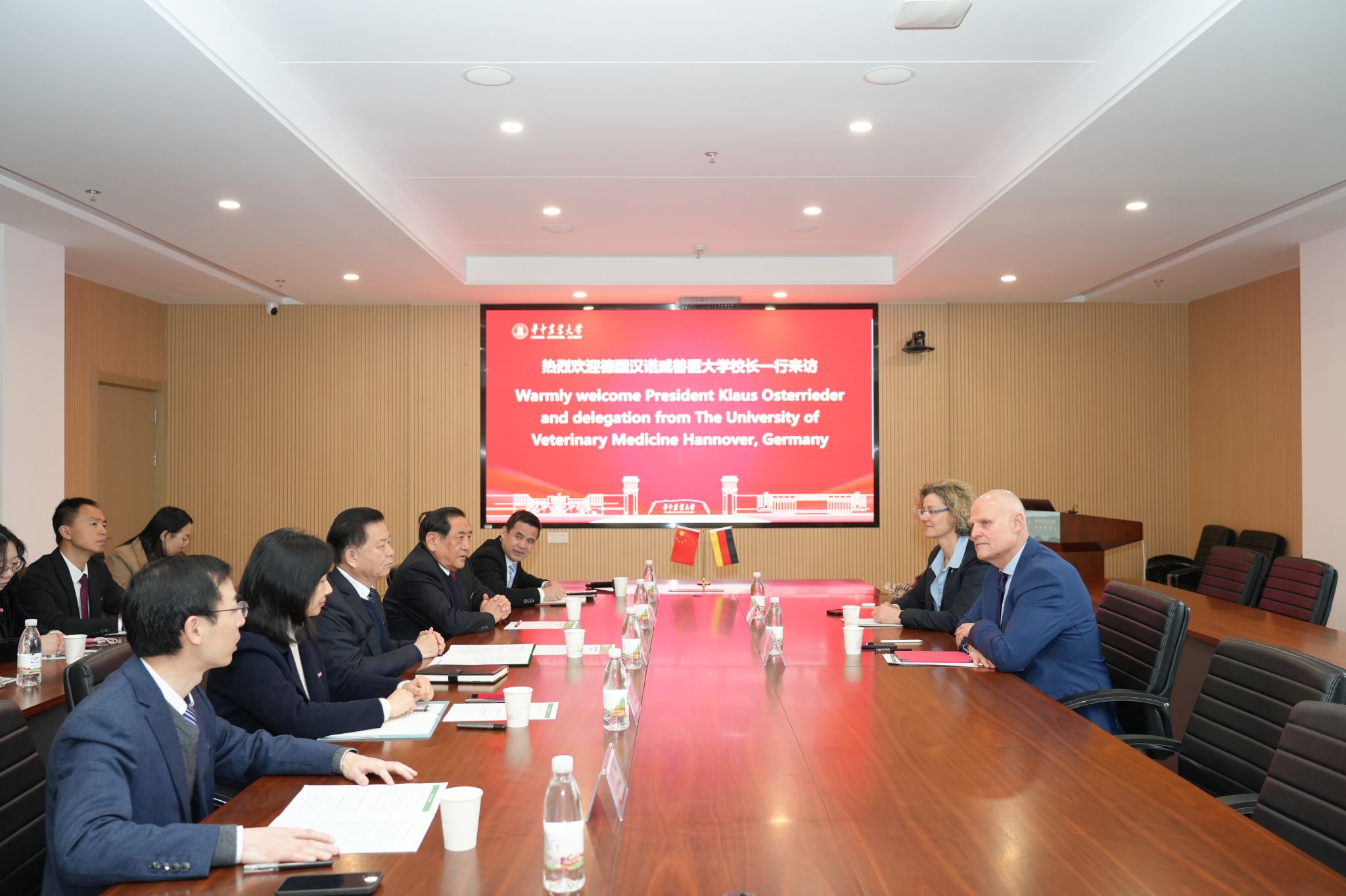 Klaus Osterrieder对我校的热情接待表示感谢。他表示,在中德双方寻求深化合作的背景下,两校可聚焦马兽医、小动物医学、异宠医学及畜禽健康养殖等双方共同关心的领域开展本科生、研究生等多层次的教育合作以及在新发传染病和人兽共患病等方向进行合作研究,为中国和世界培养更多优秀的兽医。期待通过本次交流,明确双方需求,找到共赢的合作模式,切实推动后续合作落地见效。