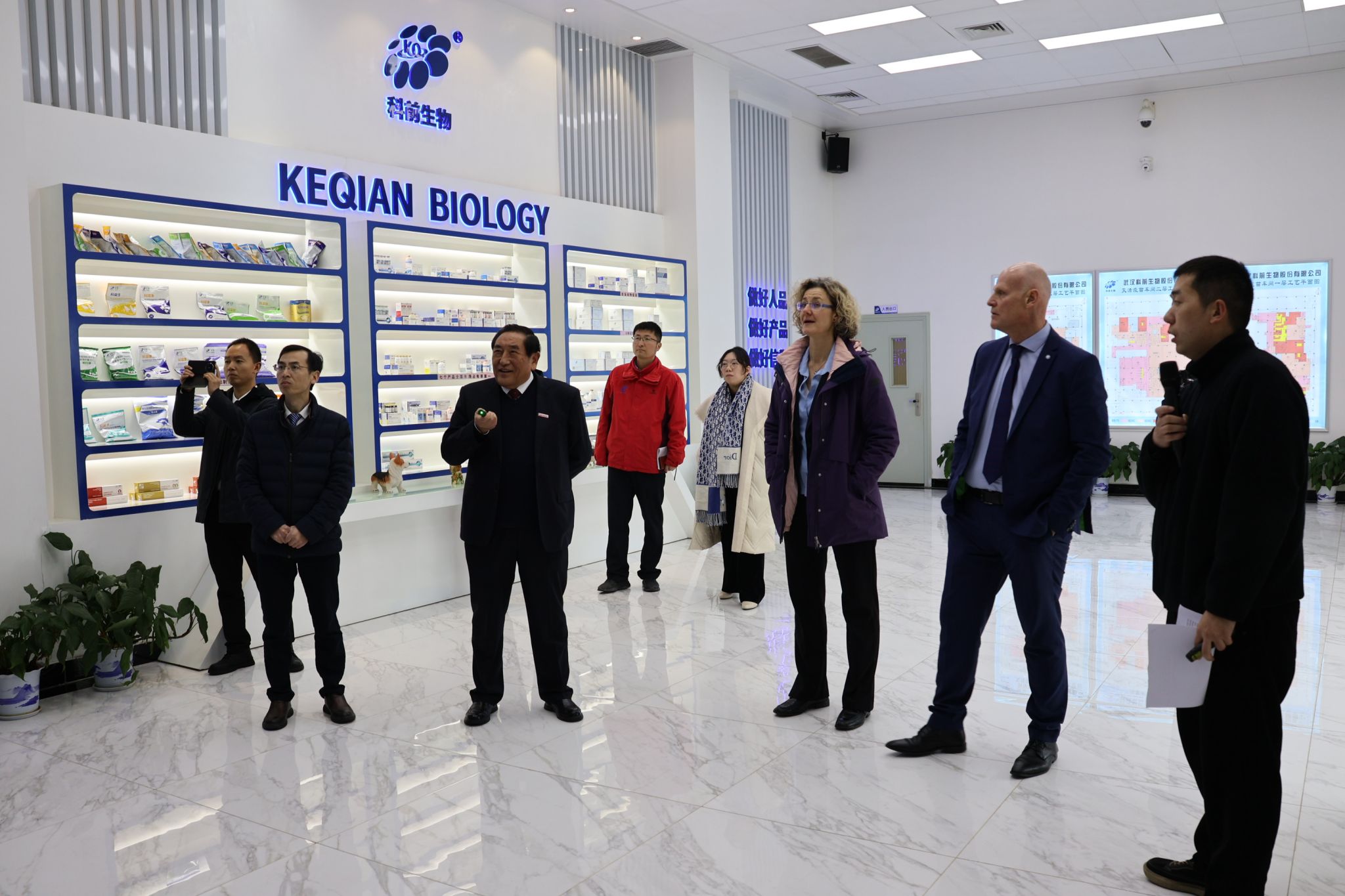 Klaus Osterrieder 一行参观武汉科前生物有限公司(通讯员 陈警 摄)
