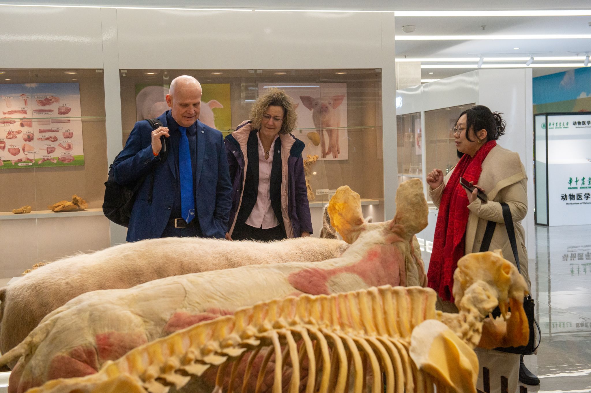 访问期间,代表团一行还实地参观我校教学动物医院、动物标本馆、第四综合楼元宇宙教室、本科教学平台及科研平台,考察武汉科前生物股份有限公司研发中心和生产线以及生猪健康养殖协同创新中心等基地,对我校在兽医临床教学、数字教育技术应用及科研创新能力给予了高度评价,在重大动物疫病防控领域取得的科研成就表示赞赏。