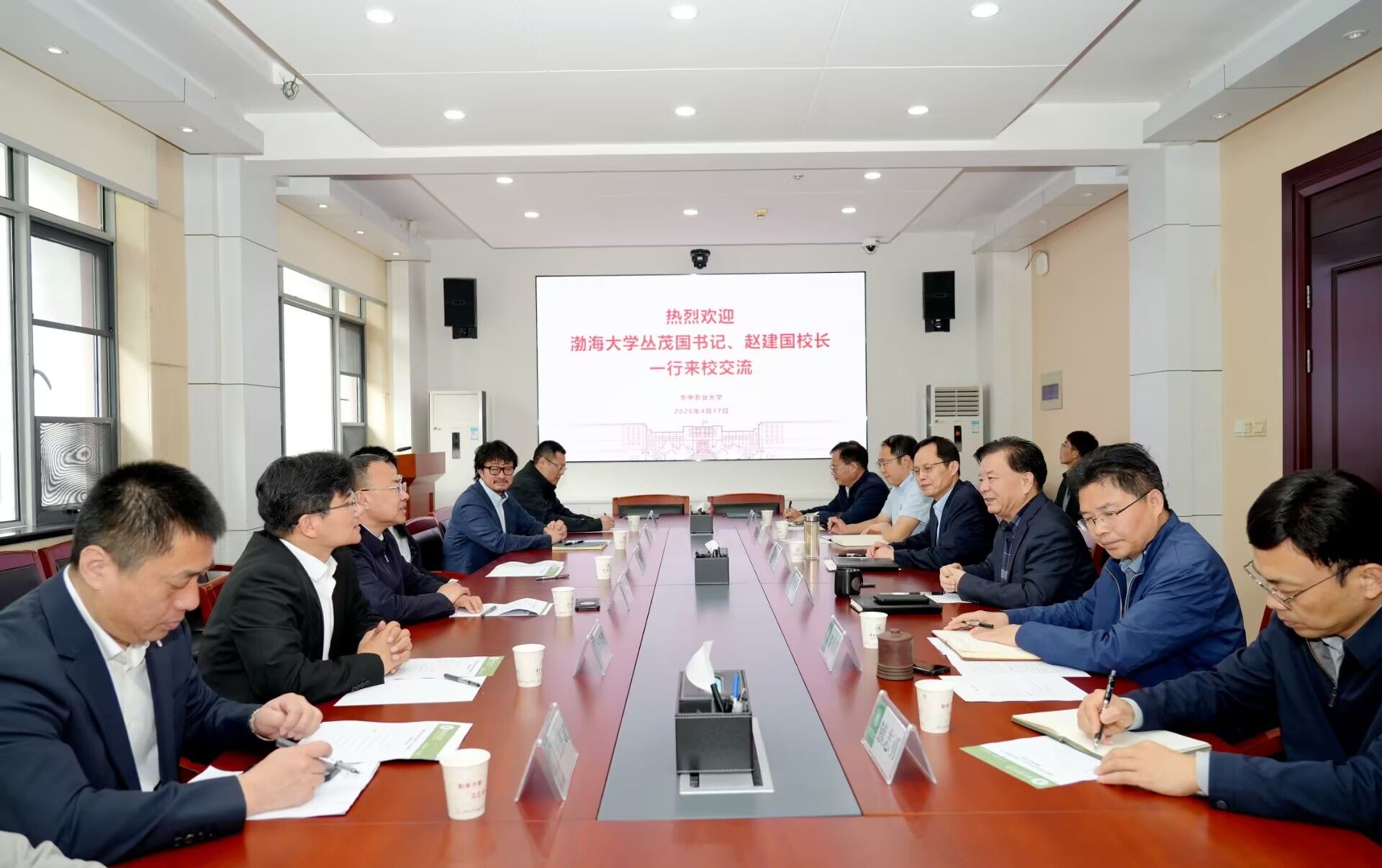 南湖新闻网讯 (通讯员 刘超)4月17日,渤海大学党委书记丛茂国、校长赵建国率队到访我校调研交流,校党委书记姚江林、副校长杨少波热情接待了渤海大学一行。
