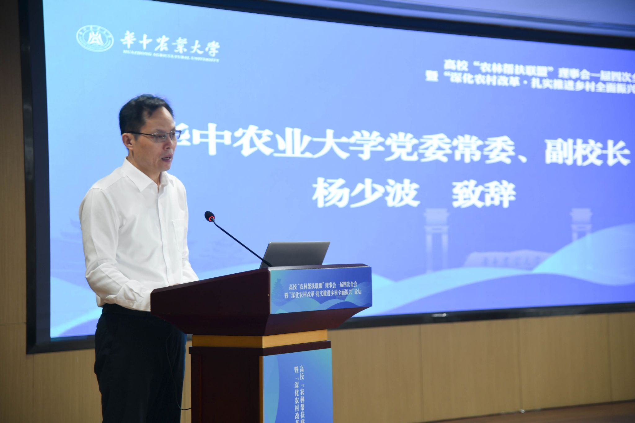 杨少波分享了华中农业大学自帮扶建始县以来,在科技赋能产业振兴与人才队伍建设方面的实践经验。他表示,作为联盟成员单位,学校始终坚持“与祖国同行、为人民奉献”,将服务国家乡村振兴战略视为崇高使命和重大发展机遇。学校将以此次会议为契机,凝聚共识、激发创新,与兄弟单位共铸协作纽带,深化帮扶举措,谱写乡村振兴新篇章。