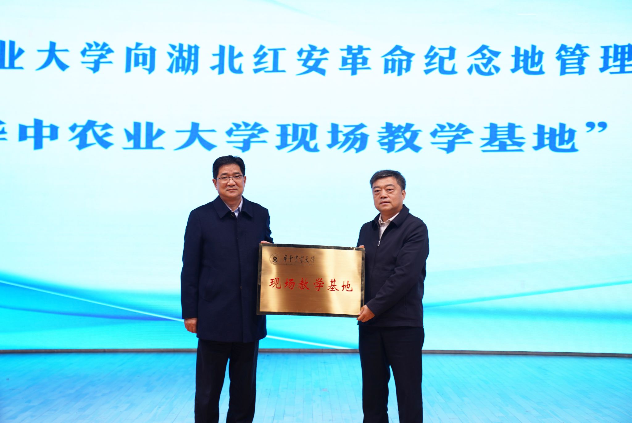 在中国(红安)红薯产业发展大会上,李向东代表学校与湖北红安革命纪念地管理中心签订关于共建乡村产业振兴带头人培育“头雁”项目现场教学基地的合作协议。