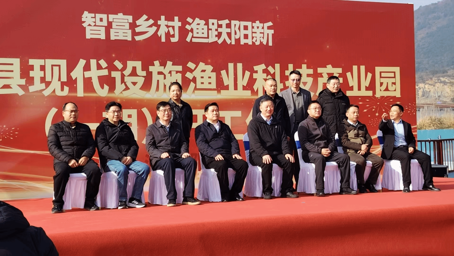 郭刚奇一行参加阳新县现代设施渔业科技产业园暨优质三文鱼产业链示范基地项目开工仪式