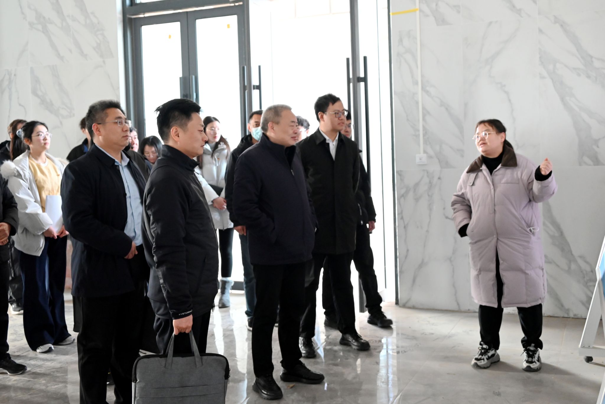 在襄阳农高区产业孵化大楼调研(通讯员 彭龙辉 摄)