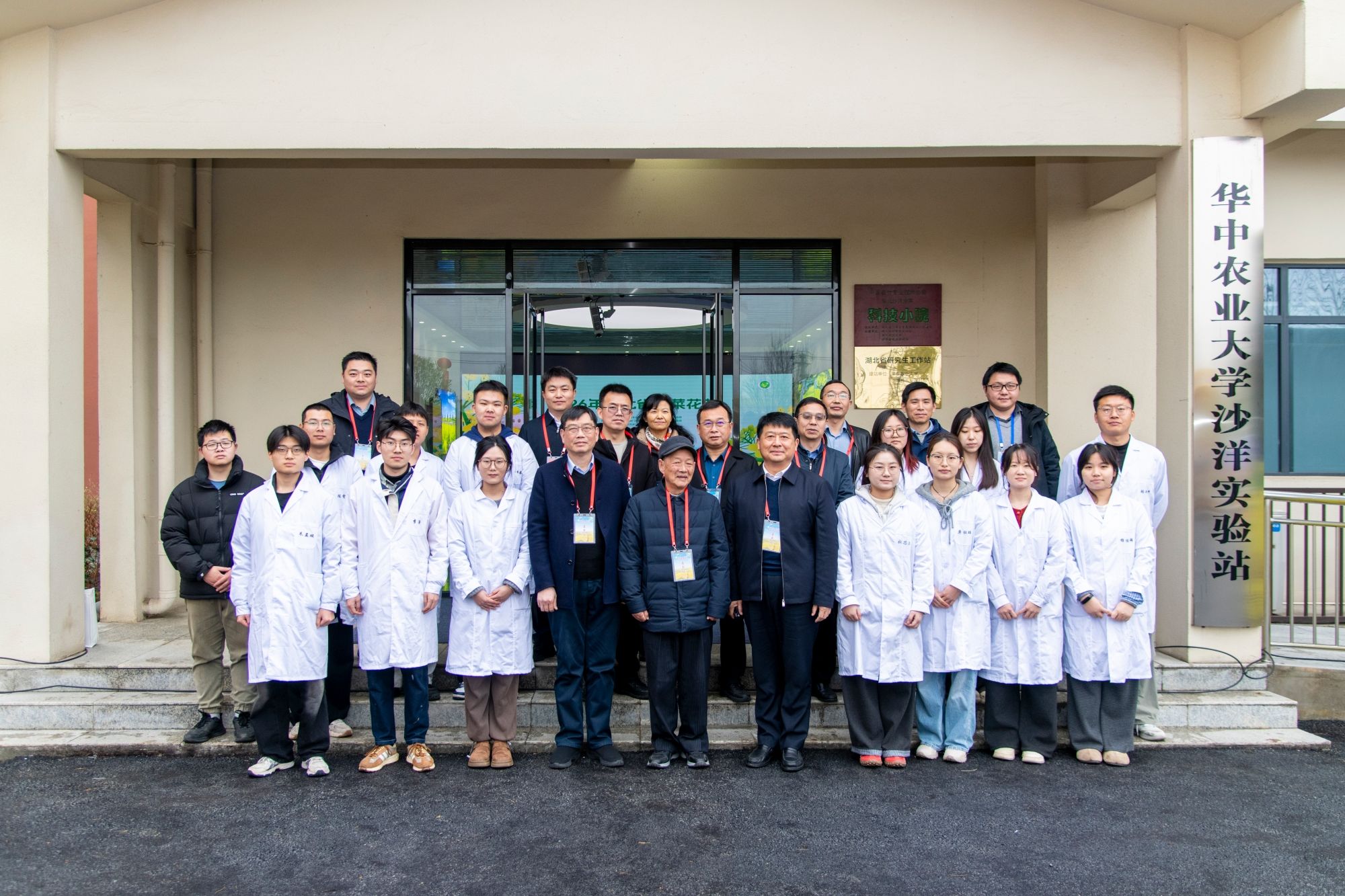 郭刚奇、傅廷栋一行与我校在科技小院学习工作的师生合影(记者 刘涛 摄)