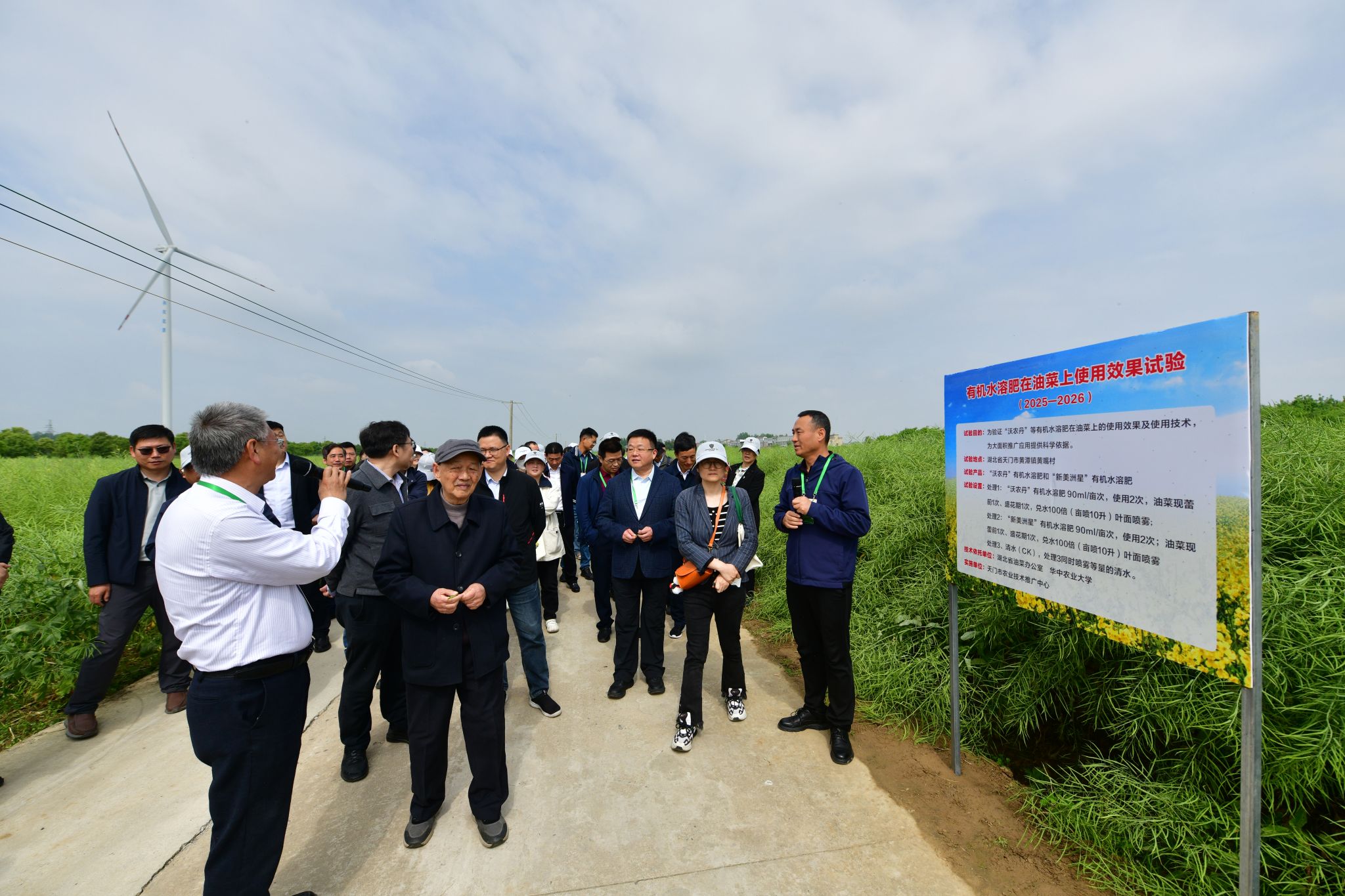 当天上午,与会代表赴天门市黄潭镇黄嘴村油菜育种攻关成果展示基地,集中观摩了高产高油油菜新品种展示及配套栽培技术应用情况,重点考察了国家油菜育种联合攻关选育的高产高油品种的田间表现。整齐连片的试验示范田、长势良好的油菜以及高效集成的农机农艺措施,直观呈现了近年来油菜育种与生产技术协同推进的成效。
