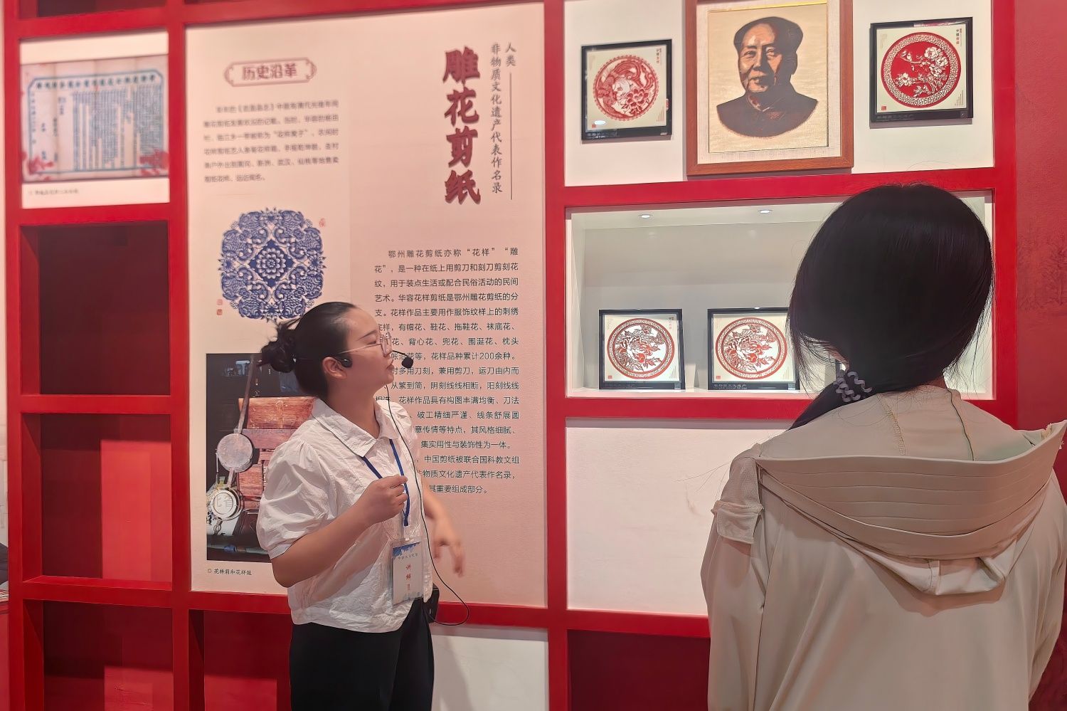 华容区文化馆内,非遗传承讲解员的讲解揭开了华容“双面风华”的面纱:一面是红色历史的厚重——从武昌起义中华容志士参战,到夏家堡烈士壮烈牺牲,革命先辈的故事在史料中愈发鲜活;另一面是非遗技艺的璀璨——世界级非遗雕花剪纸通过家族传承与社区授课焕发新生,拥有750年历史的华容土布经校企合作成为文化名片,而糍粑、鱼圆等非遗美食,其制作中对食材的精细处理,更暗含跨越古今的食品安全智慧。