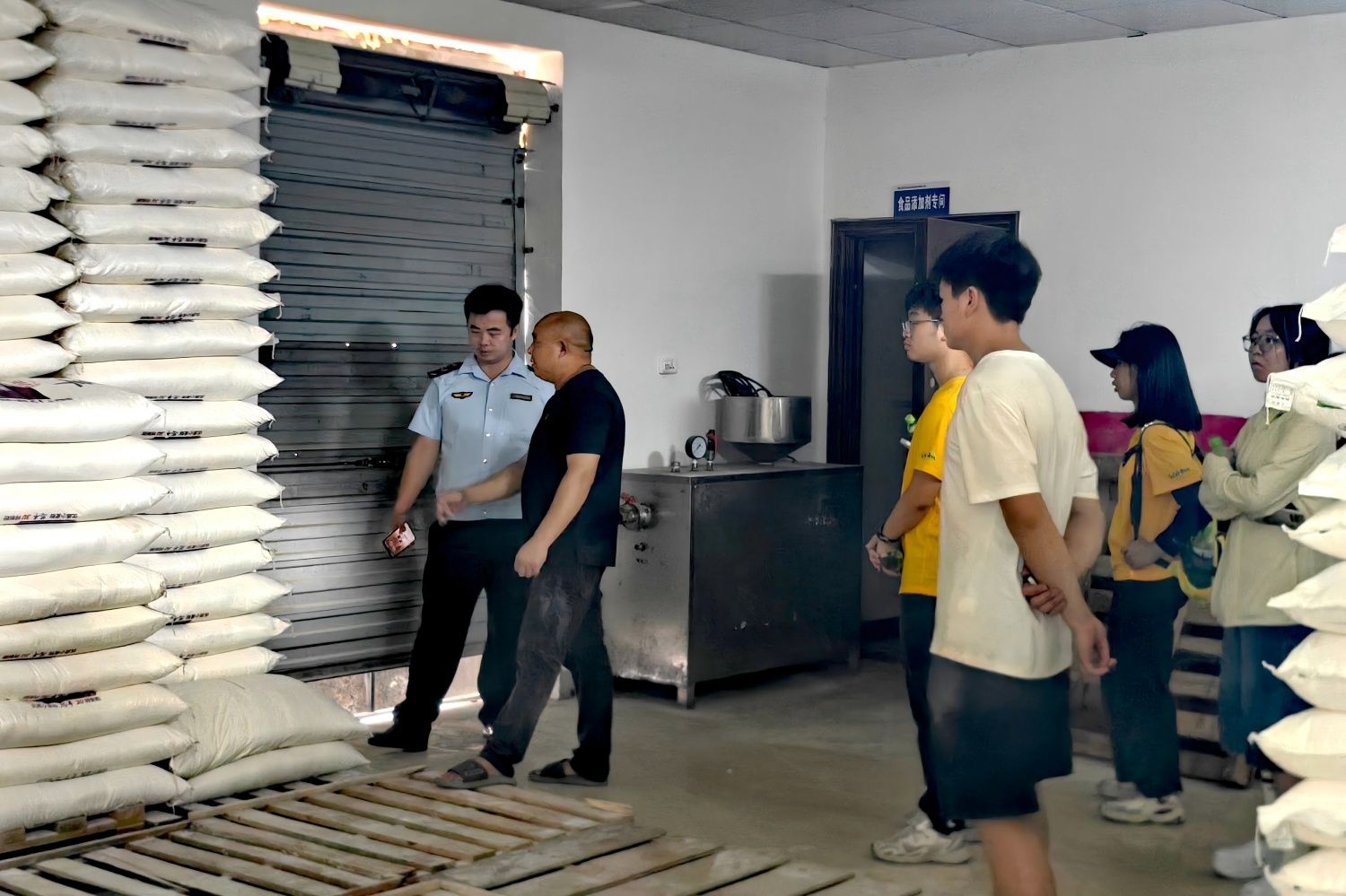跟随市场监督局工作人员现场巡查食品加工厂(通讯员 詹淘淘 摄)