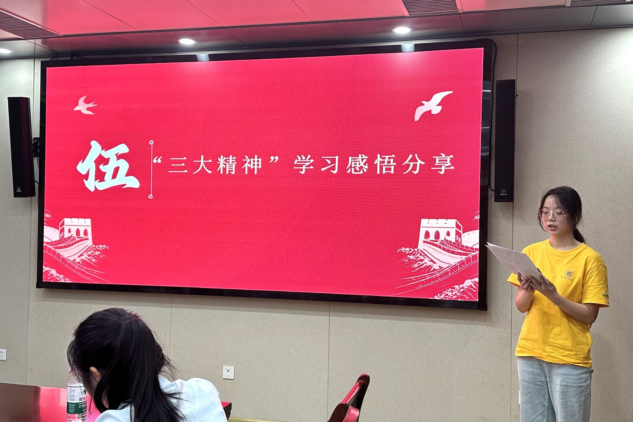队长杨莉代表团队分享“三大精神”的学习感悟(通讯员 刘心怡 摄)