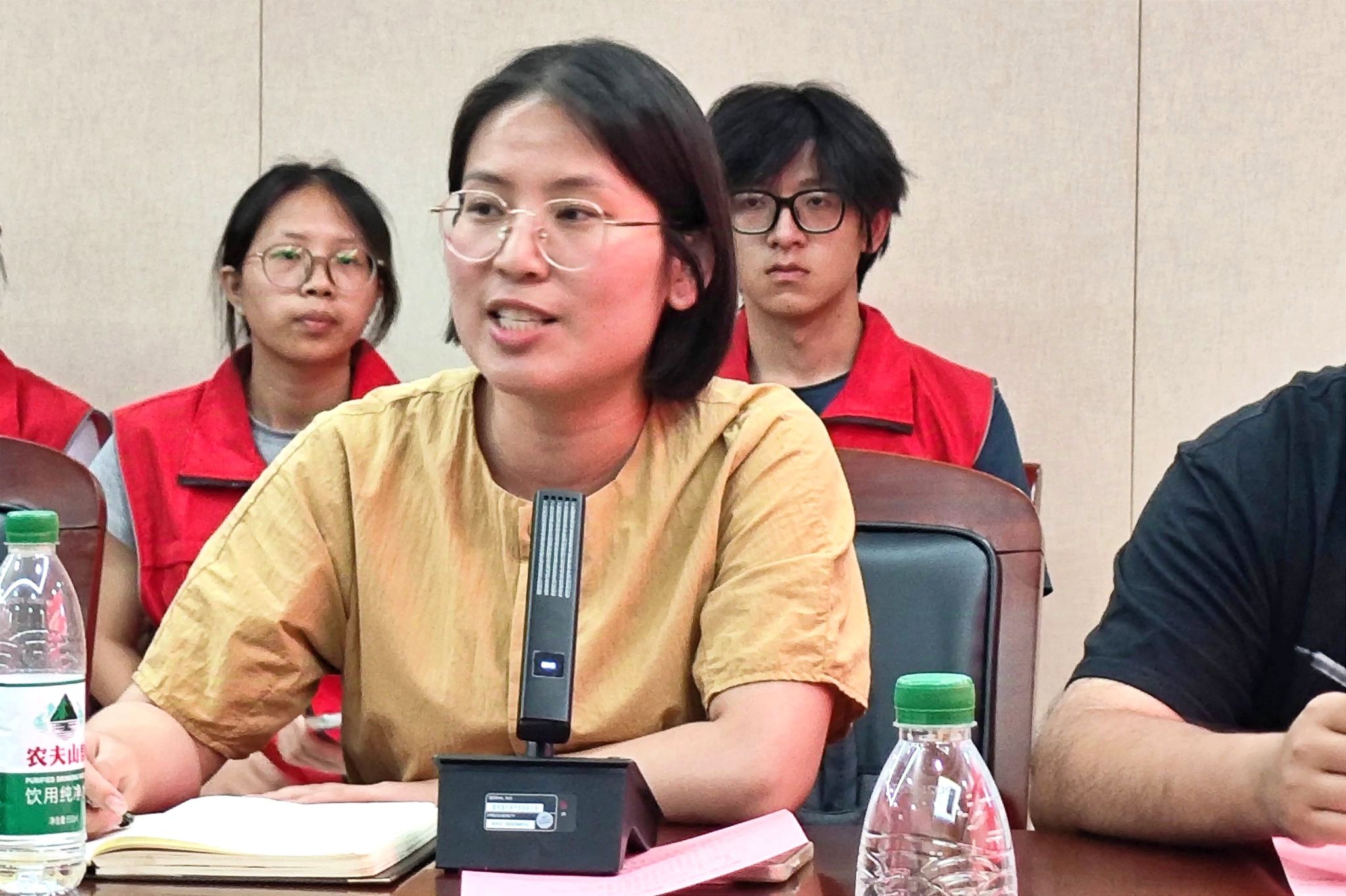 队长杨莉分享了她对大别山精神、抗疫精神和抗洪精神的理解与感悟,她谈道:“这片曾见证过枪林弹雨的土地,如今正用莲香、稻浪、渔歌编织新的传奇,正期待着青年一代的奋斗故事,而我们这群带着书本气息的青年,更要把‘三大精神’的种子播撒在这里。”