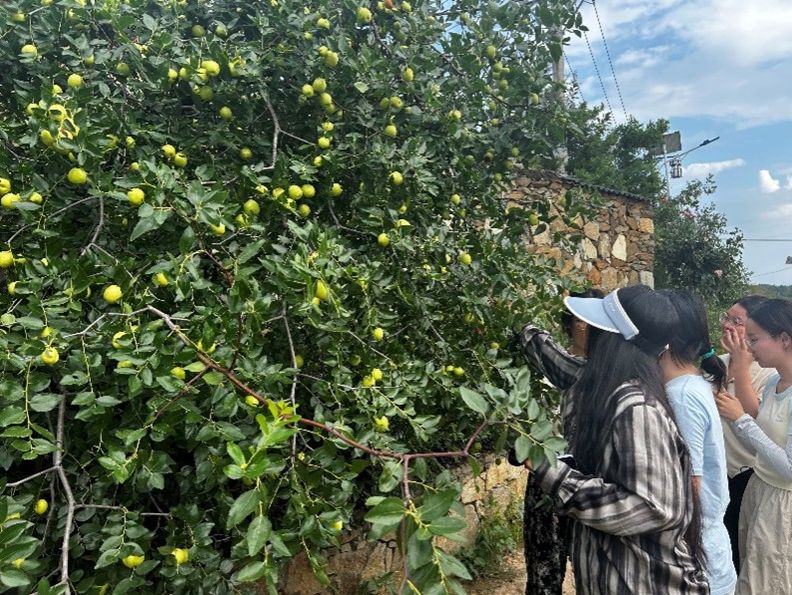 7月12日下午,团队成员共同来到枣阳市刘升镇李老湾村。当车辆驶入枣阳市李老湾村时,连片枣林织就的绿色画卷令大家惊叹,枝头缀满的青枣在阳光下泛着光泽。2019年,乘着湖北省美丽乡村示范点建设的东风,李老湾村充分挖掘本地山水资源优势,村集体统一规划、建设、维护,引入市场主体运营,打造枣树林田园综合体,大力发展乡村旅游经济,目前已投资建成山水农庄、大灶台、商贩摊位、卡通乐园、草莓采摘园、共享菜园等特色经营项目,有效带动了村民增收。村集体通过收取租金、服务费等方式获得收益,每年保底收益达三十多万元。“我们始终坚持‘农旅融合、以农促旅、以旅富农’的发展理念,将农业产业与乡村旅游有机结合,让游客在欣赏自然风光的同时,体验到农耕文化的魅力。”李老湾村站长李述勤介绍道。当看到农户讲述丰收时绽放的笑容,调研员丁戈谈到:“绿水青山就是幸福靠山,立足资源禀赋,小山村也能蹚出特色振兴路!”