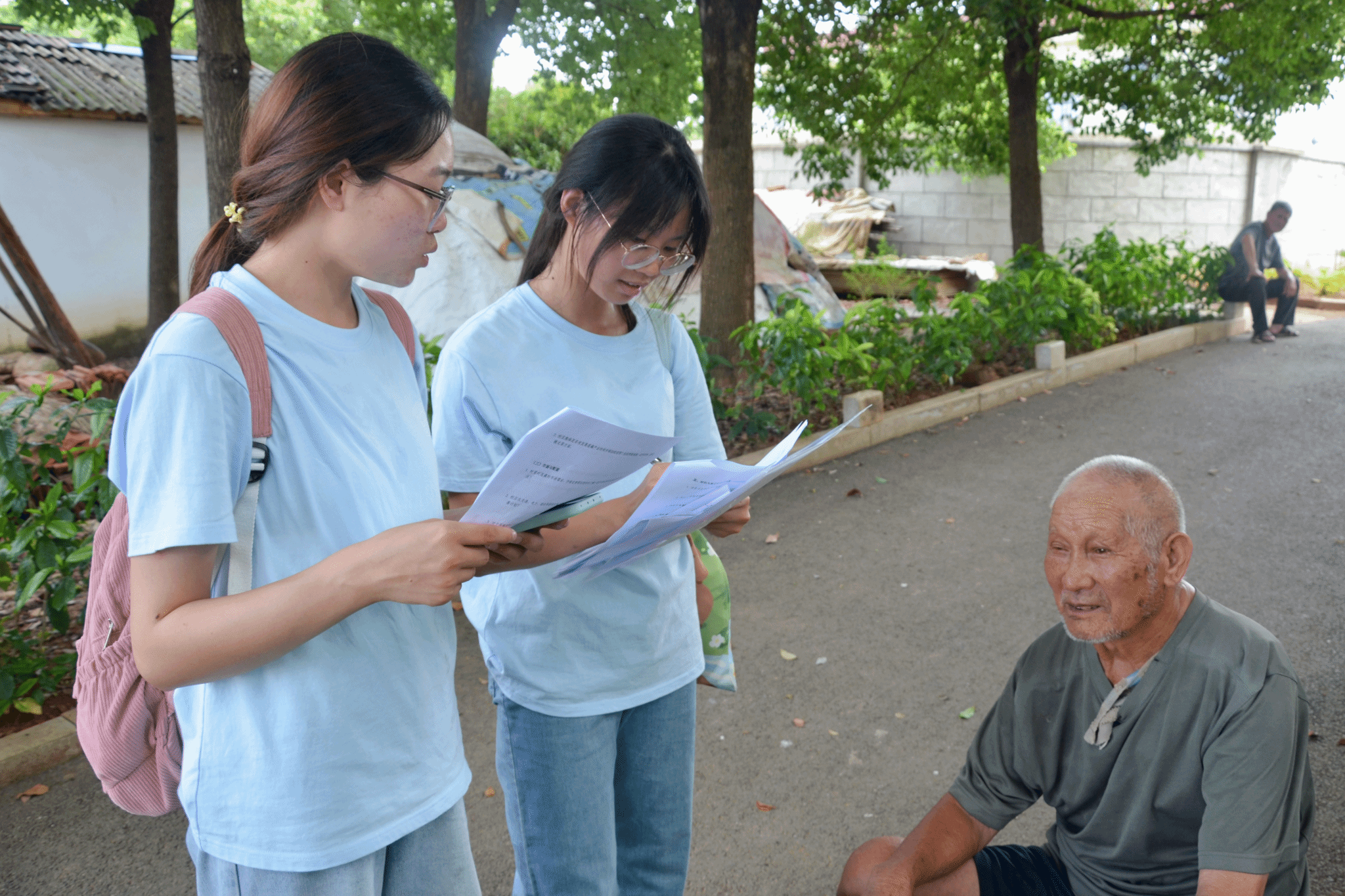 团队成员对村民进行访谈(通讯员 章雅萍 摄)