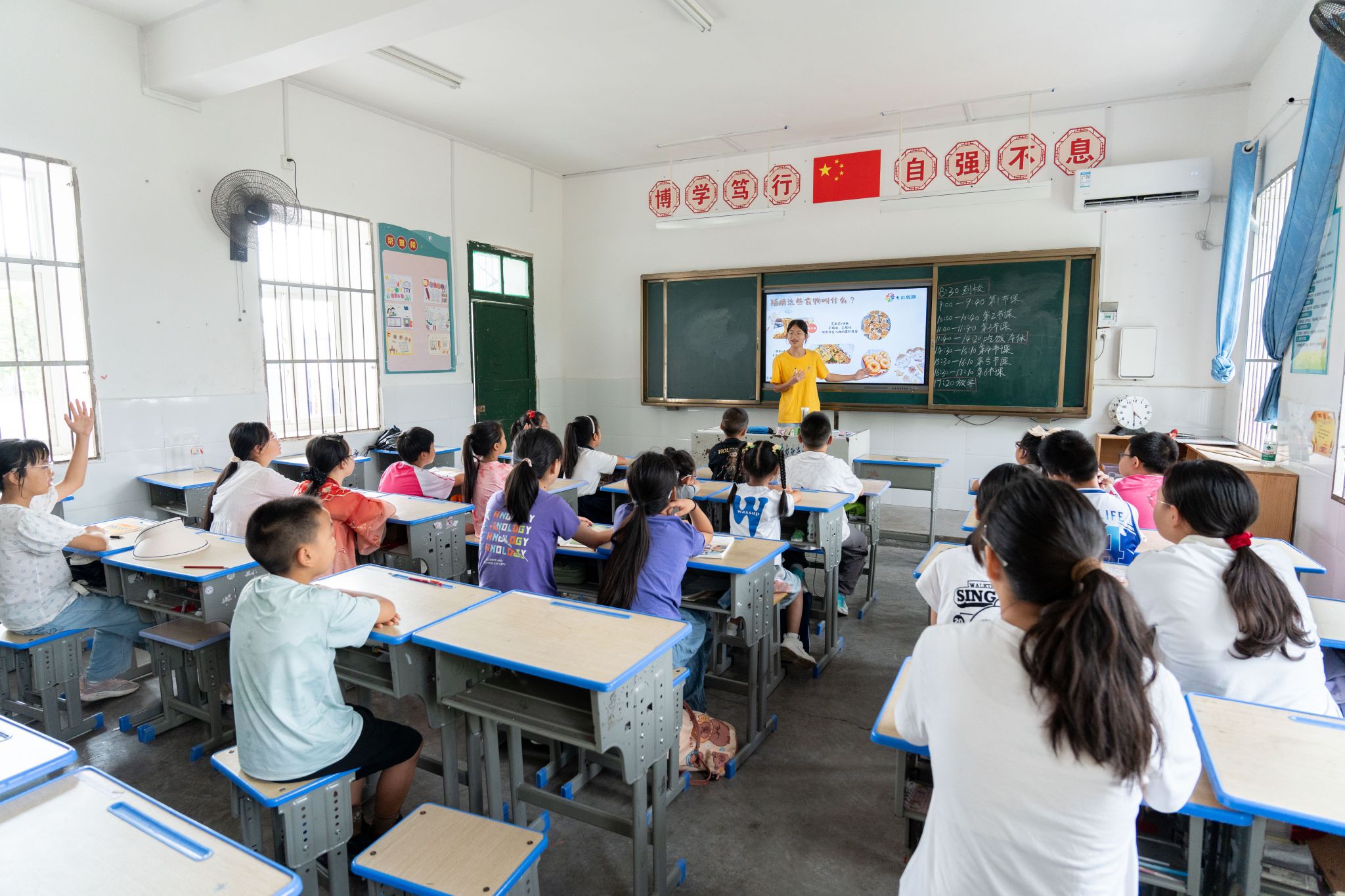 “早餐要吃好,不然上午上课会没精神哦!”7月14日上午,志愿者李旭红以“早餐健康”为主题进行课前分享,向小朋友们强调吃早餐的重要性,还通过图片让大家猜食物名,随后开展“能量连连看”互动小游戏,最后以趣味歌曲结束课程,孩子们在轻松的氛围中了解健康饮食的基础知识。