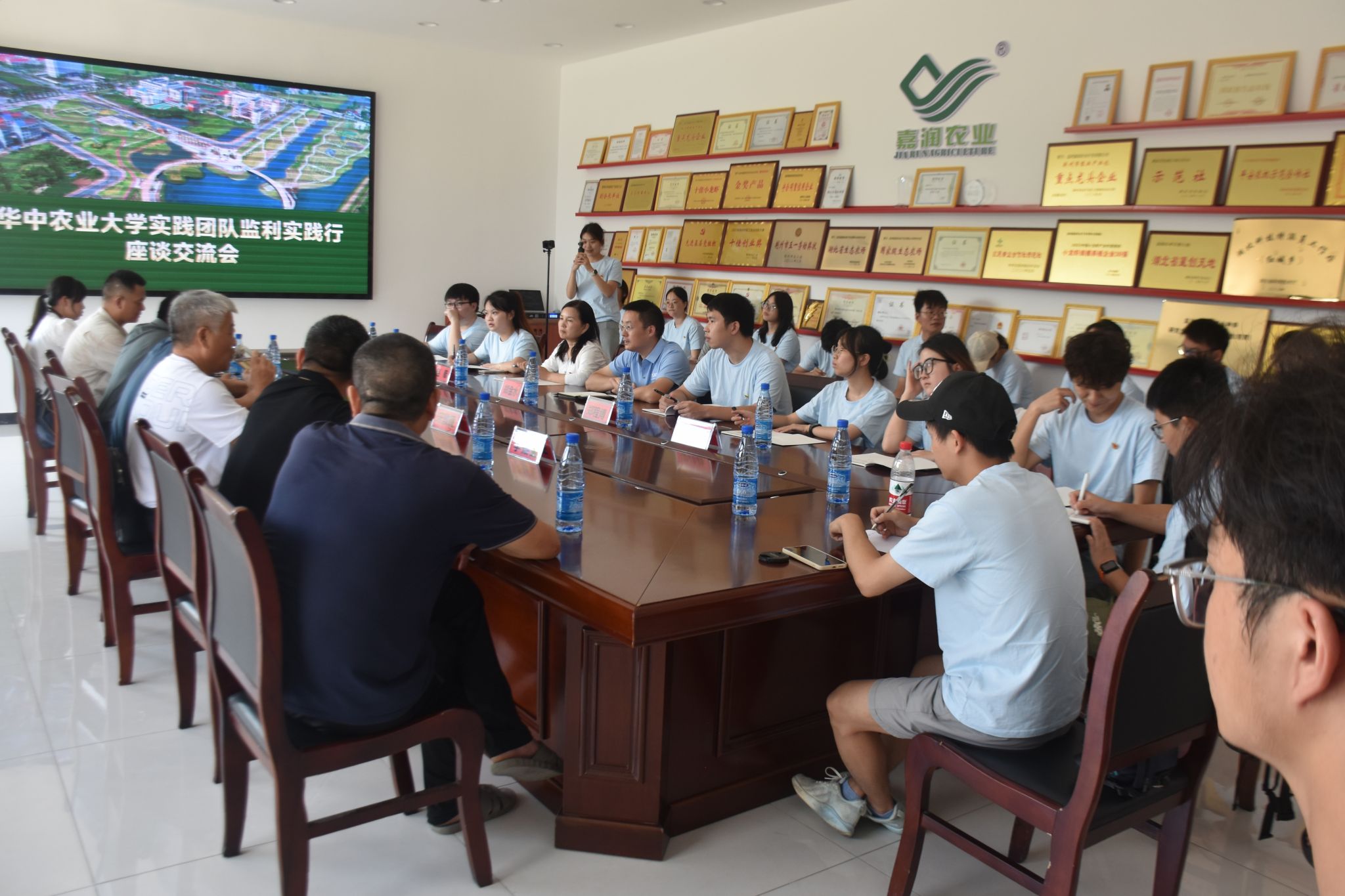 午后,实践团队来到监利嘉润农业示范基地开展“校地联合”座谈会,作为华中农业大学研究生联合培养基地,嘉润农业创始人杨永智邀请了监利市农业技术推广中心副主任王奇阳等5位专家与师生一行就监利水稻产业进行深度对话,不仅直击产业痛点,更为实践团队上了一堂生动的实践课。