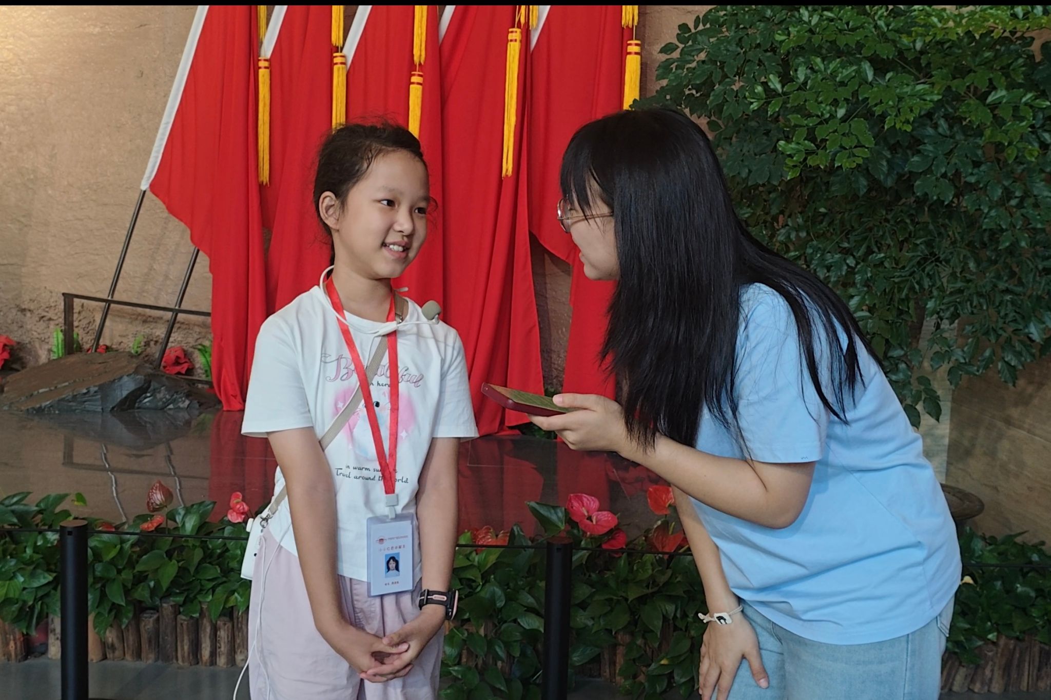 在中共长沙历史博物馆,团队成员协作拍摄“走进长沙党史馆,实事求是话百年”微党课拍摄,在镜头前生动阐释对党的思想路线的深刻体悟。实践团采访了馆内的少先队员讲解员,捕捉红色基因代代相传的生动画面——“把感动讲给更多人听”,为团队传播红色文化注入了不竭动力。