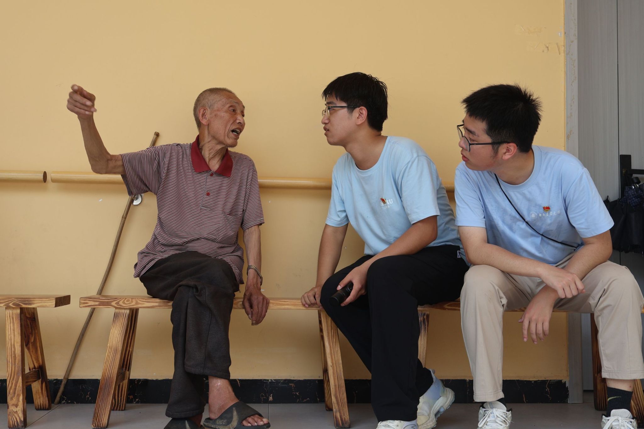 实践团成员向当地居民了解十八洞村老年基地生活(康凡 供图)