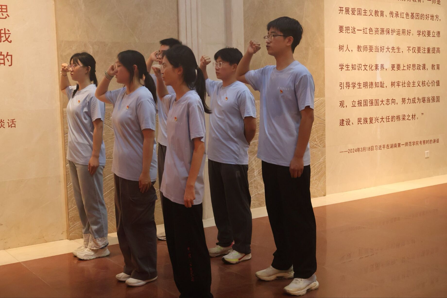 团队成员在第一师范旧址展馆党旗前庄严宣誓(郭昊宇 摄)