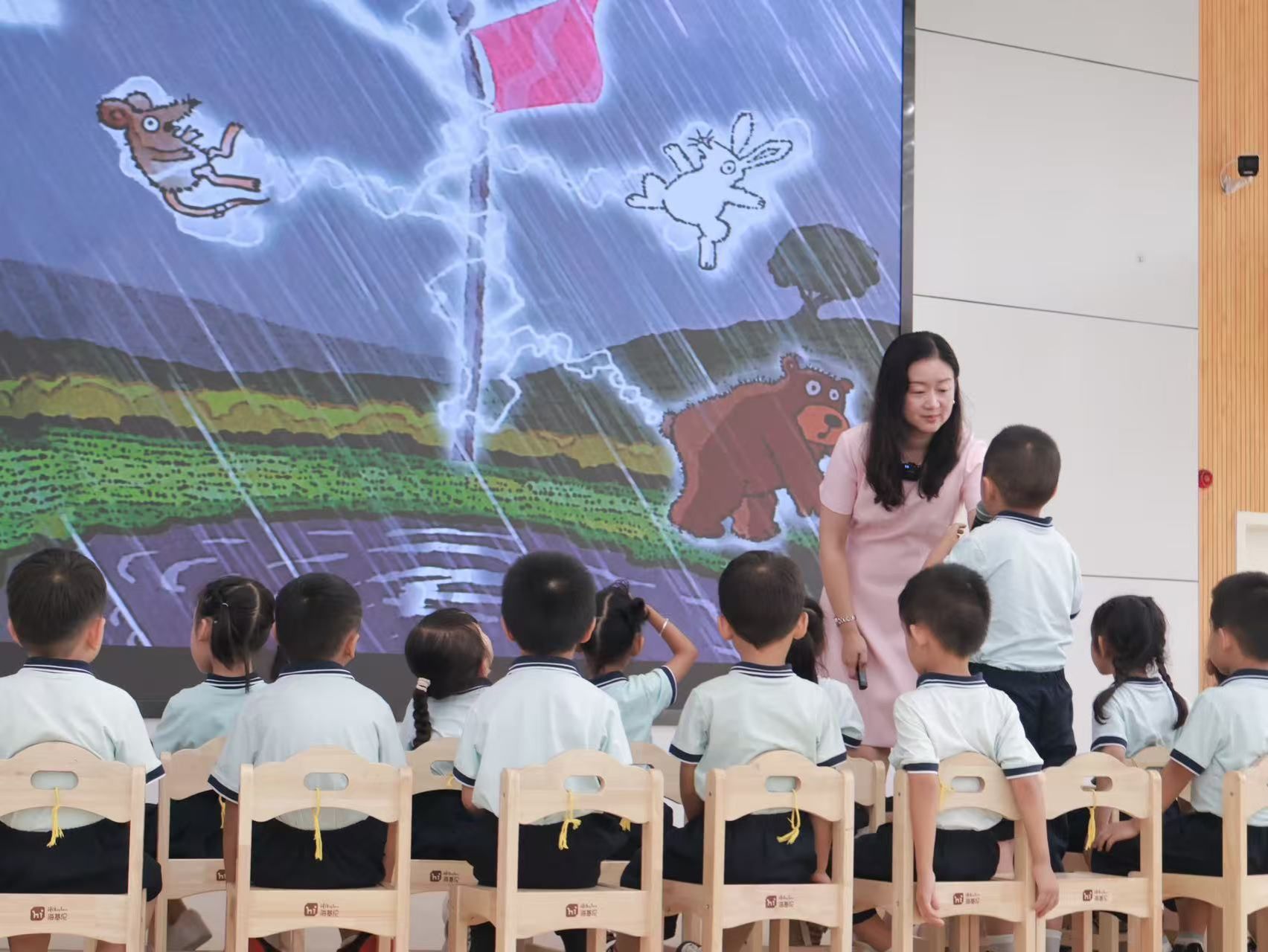 为了使参训学员迅速融入培训氛围,观摩专家示范、共同探讨教学,2025年的送教入园活动安排在第一期开班当天的普洱市幼儿园。项目主讲专家、华中农业大学幼儿园园长兼书记王丹以绘本《好消息、坏消息》为载体,以普洱市幼儿园20余名中班幼儿为教学对象,巧妙运用情境教学法,为第一期100名学员和普洱幼儿园的全体教师带来了一堂语言活动示范课,展示了如何将普通话学习目标有机融入趣味活动与思维、情感培养,为在场学员提供了有效范例,并与百余名同行展开深入探讨和交流。此次示范教学真正做到了将课堂置于本土、将教育经验送入当地,充分彰显了“送教入园”的特色亮点与项目团队的专业和诚意。