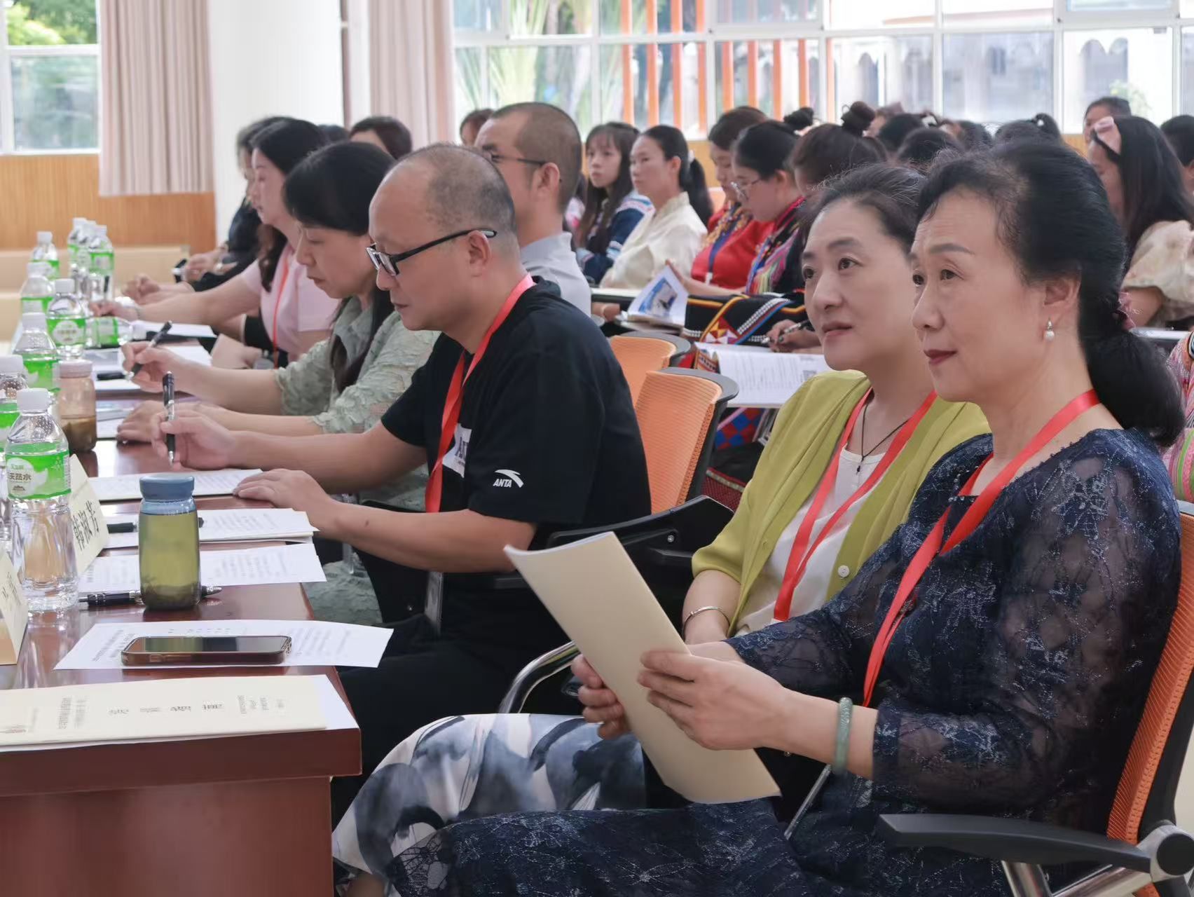 结业仪式上,当地幼儿教师也充分发挥能歌善舞的本领,用朗诵、情景剧、歌舞串烧、民俗表演等成果汇报演出,精彩呈现了普通话及语言教学能力的培训收获。歌颂家乡、礼赞时代的民俗表演展现了民族地区乐观积极的民族风貌,以“学好普通话、善教幼儿语”为主旨的小品节目则展现了当地教师对教育事业浓浓的热情与执着。“学以致用,方得始终。面对暑期结束后新学年的教育教学活动,我们既有忐忑——担心自己未能达到理想状态;更有信心——必将把所学所得转化为教学实践。无论前路如何,这段普通话的训练经历都让我成为了更好的自己。”今年第三期学员刘正毅的总结代表了千余名受训学员的心声。当全体学员共同朗诵起那首《中国话》时,项目团队与参训学员眼中有不舍也有自豪,以普通话为媒,各族人民如同石榴籽一般紧紧相拥,共同谱写了一曲民族大团结的激情赞歌。