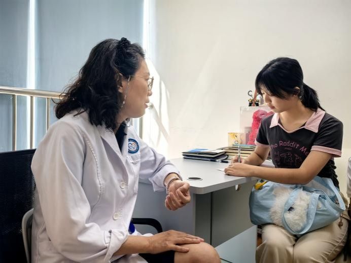 实践团队成员汤佳琦采访医学专家高岩女士 (通讯员 樊嘉怡 摄)