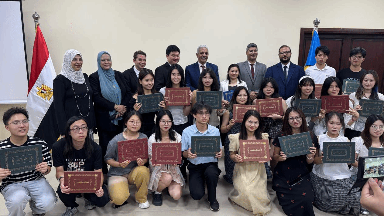 埃及爱资哈尔大学副校长Mahmoud Siddiq教授在证书授予仪式上高度评价华中农业大学师生代表团在本次访学实践中所展现的专业素养和卓越表现。他表示这是华中农业大学与埃及爱资哈尔大学签署合作谅解备忘录后的第一次赴埃师生访学团,这次访学实践让双方都受益匪浅,也期待双方携手共筑中埃农业科教合作的新典范。埃及爱资哈尔大学Mohammed Farouk教授祝贺华中农业大学师生代表团圆满完成访学实践,他表示作为埃及爱资哈尔大学中国关系组织者很高兴看到两校友谊的进一步深化,下半年爱资哈尔大学校方代表也将再次前往华中农业大学交流合作。